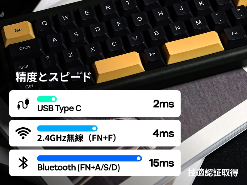 Equipped with tri-mode connectivity, the TH40 supports Bluetooth, 2.4GHz wireless, and USB connections. This versatility ensures seamless switching between different devices, making the keyboard suitable for gaming, professional work, or mobile use with a laptop.