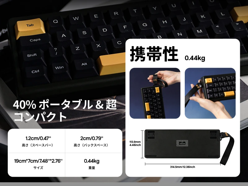 The EPOMAKER TH40 is a marvel in compact keyboard design, featuring a 40% layout that eliminates the number pad, arrow keys, and the traditional top row of number keys. This may sound minimalistic, but many users find this layout enhances typing efficiency. The TH40 includes a split space bar with an FN key conveniently placed between the 2.25u and 2.75u spacebars, designed to minimize finger travel and increase typing speed. Lightweight and portable, this keyboard is ideal for those on the move.