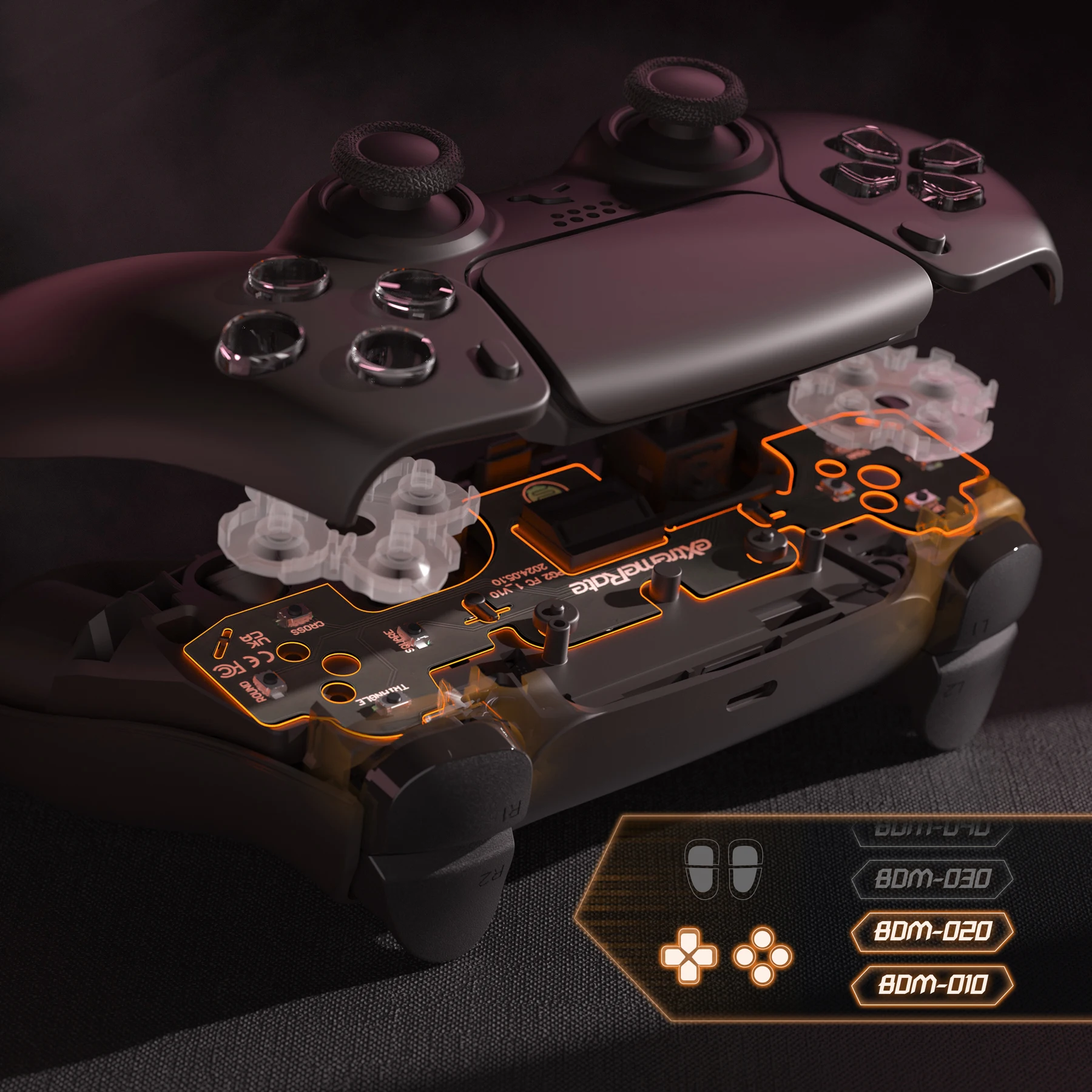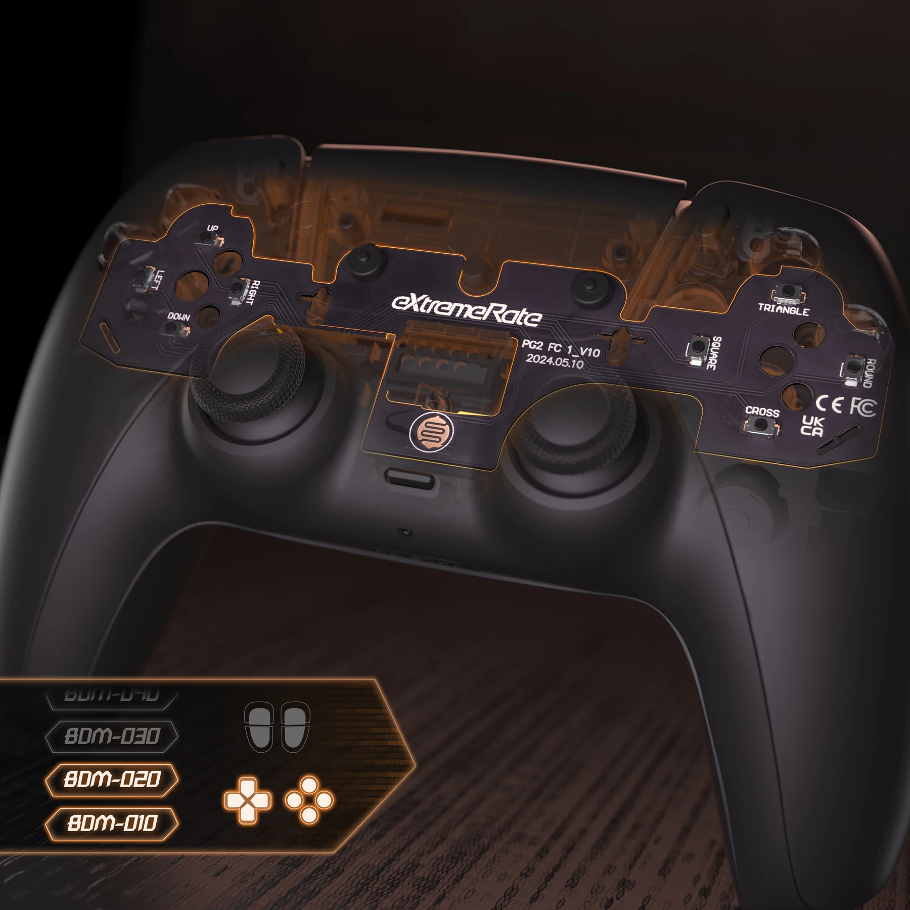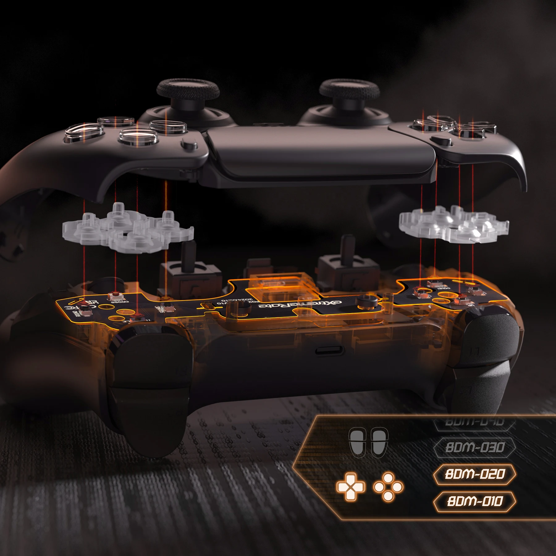 Compatible with eXtremeRate DTF LED kit, Hair Trigger Clicky kit, SDP buttons and RISE Remap kit for PS5 controller.