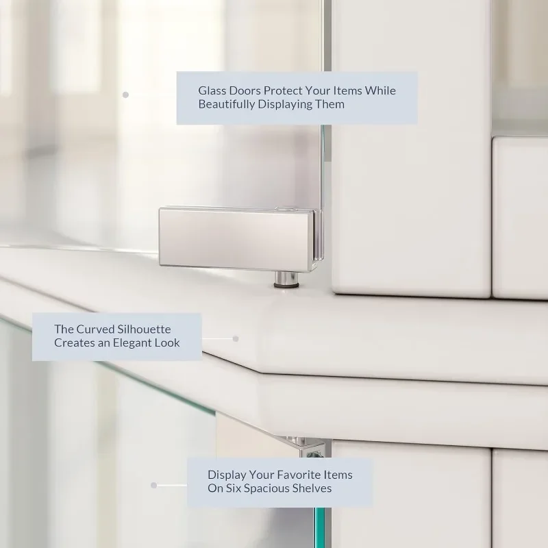 [Natural Classic Design] - Available in Cherry, Walnut, Oak, Black, and White, this wood cabinet with glass doors has a curved and smooth silhouette. Its eye-pleasing design is soft and relaxing, adding a gentle element to your interior design and the items being displayed inside it.