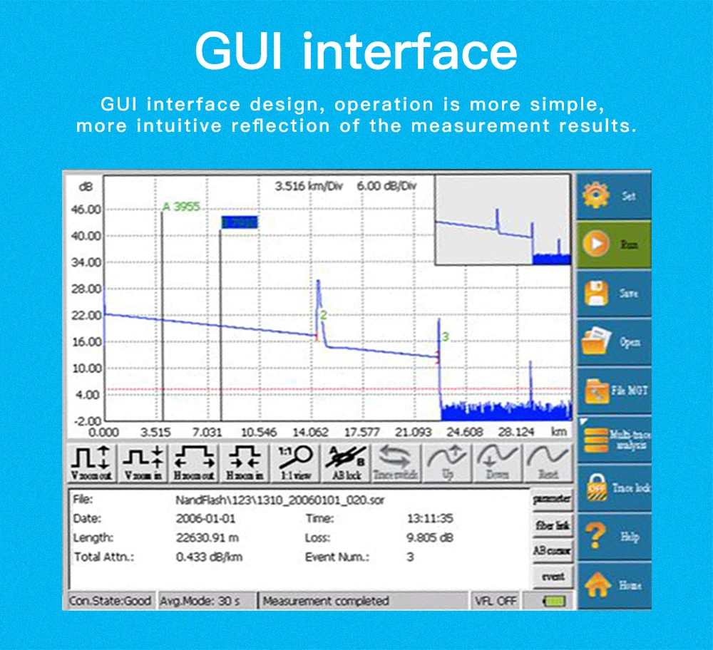 FTTH Fiber Optic Tester 1310/1550nm Singlemode SM OTDR 32/30dB Dynamic Range , OrienTek TR600 SM 5.7 inch Touch Screen OTDR