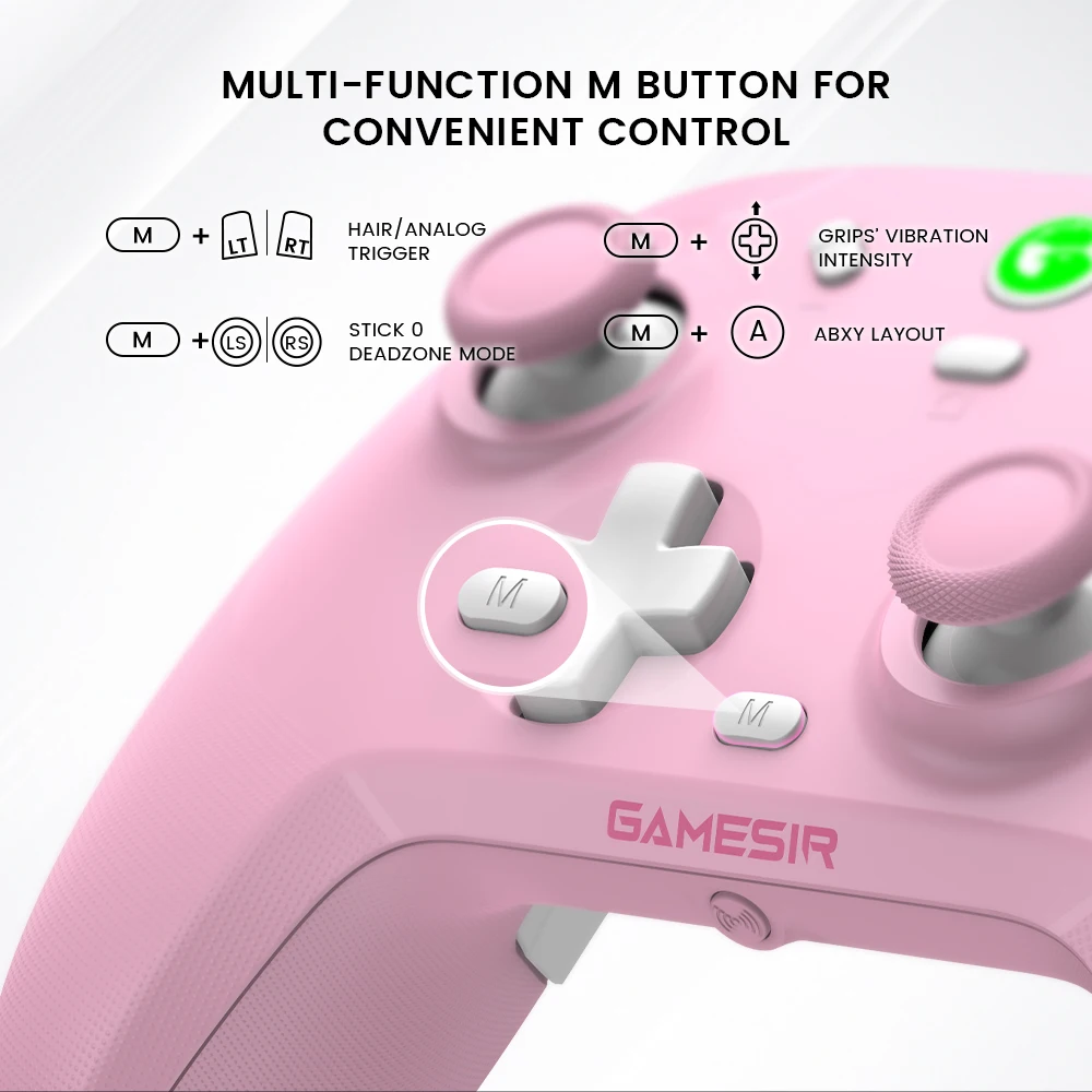 Seamlessly control various functions with the multi-function M button, from trigger mode to stick mode, and vibration intensity to ABXY layout.