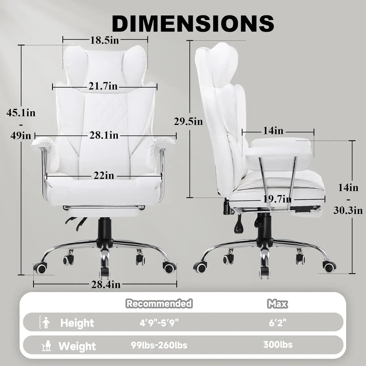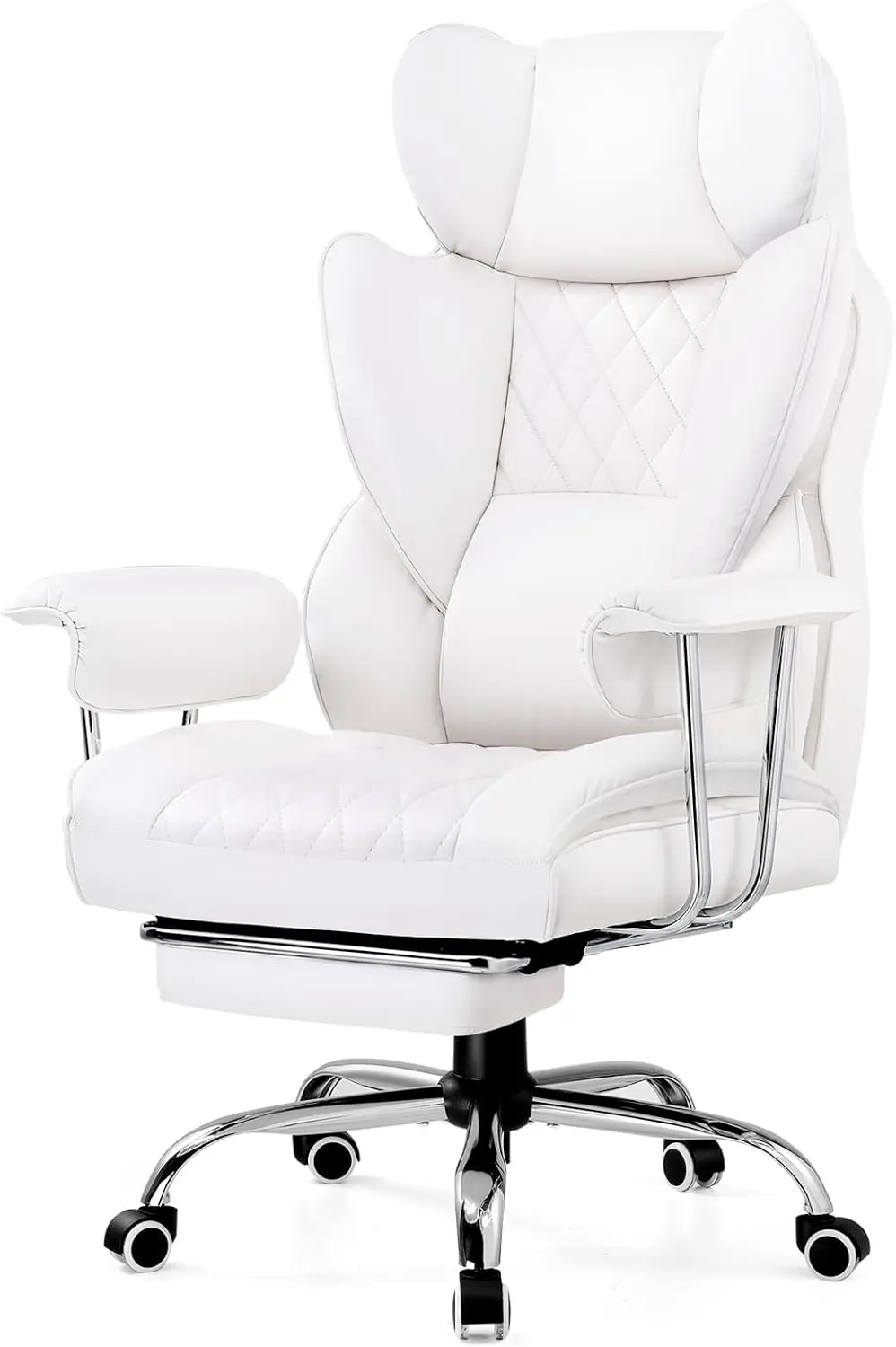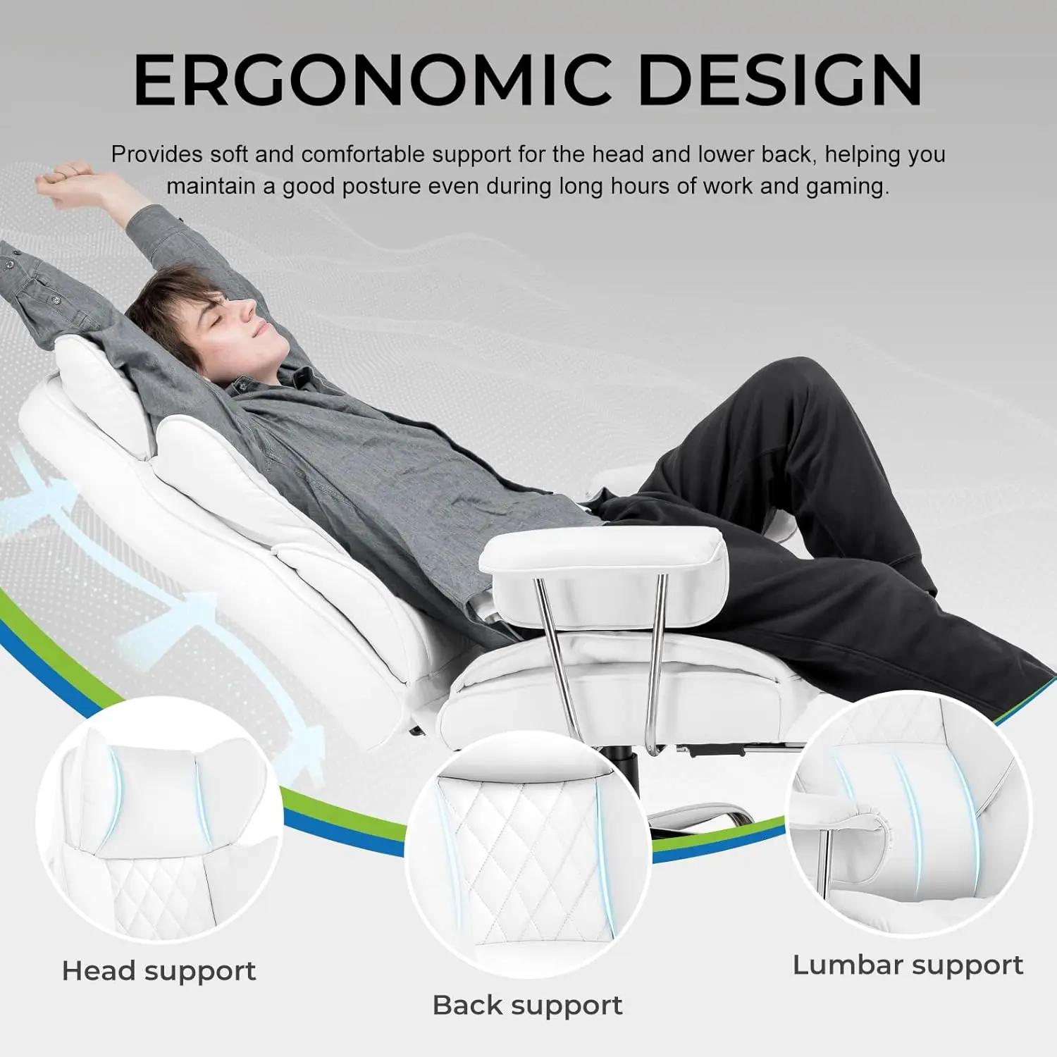 Gaming Chair,Office Chair with Pocket Spring Lumbar Support, Ergonomic Comfortable Wide Office Desk Computer Chair with Outward Fixed Soft Armrests and Footrest,(PU Leather, White)