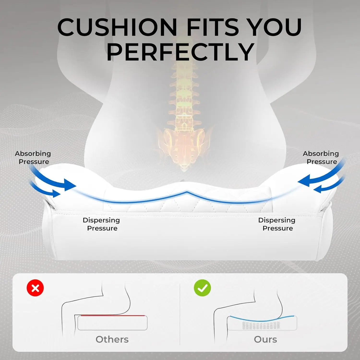 - 【3D Wrapping Comfort】 This ergonomically designed backrest targets pressure dispersion for the neck, shoulders, and back. With dual-layered construction, featuring elastic high-density foam and high-loft fiber, it offers support and a 3D enveloping sensation. The oversized height-adjustable lumbar pillow ensures personalized support, providing a comforting embrace.
