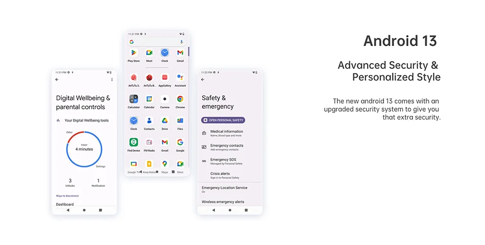 OS ------------ Android 13, Global Version, Support Multi-Language and Google Play
