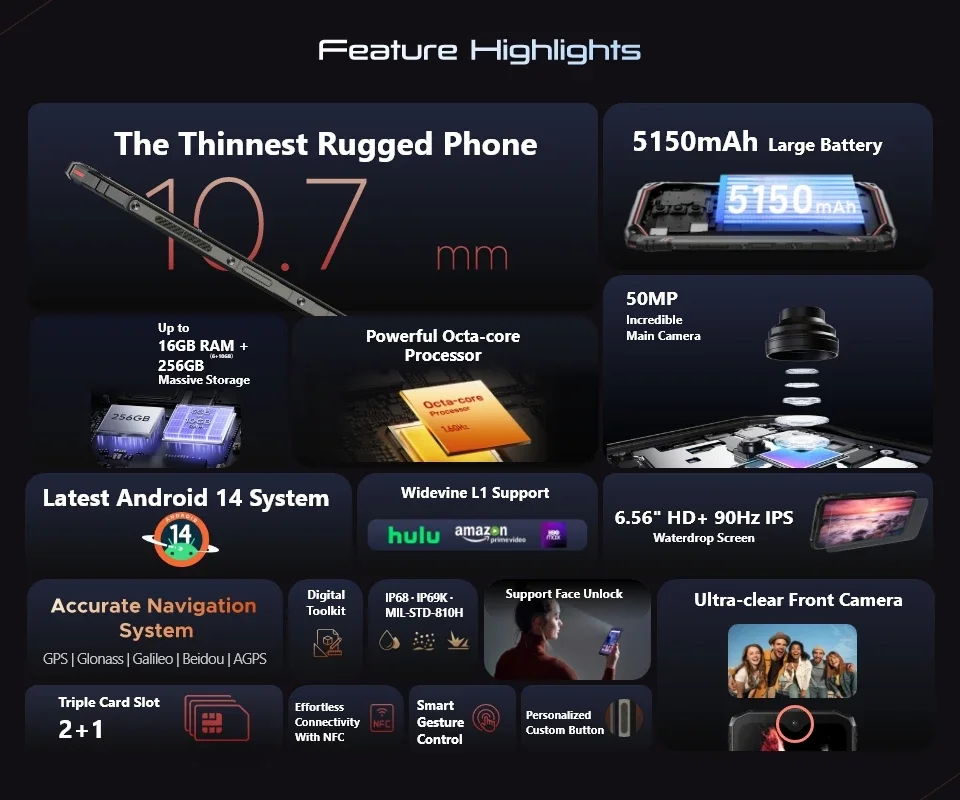 The Thinnest Rugged Phone with 5150mAh Large Battery
