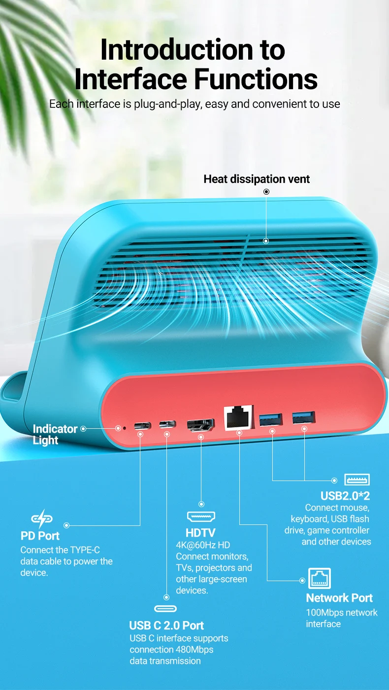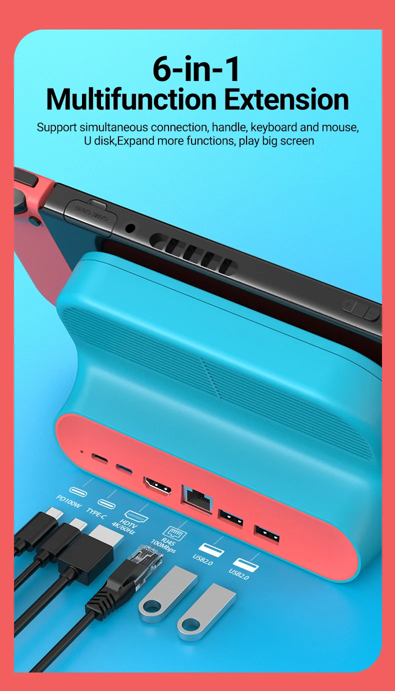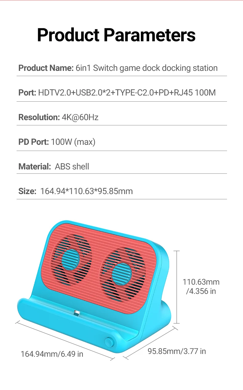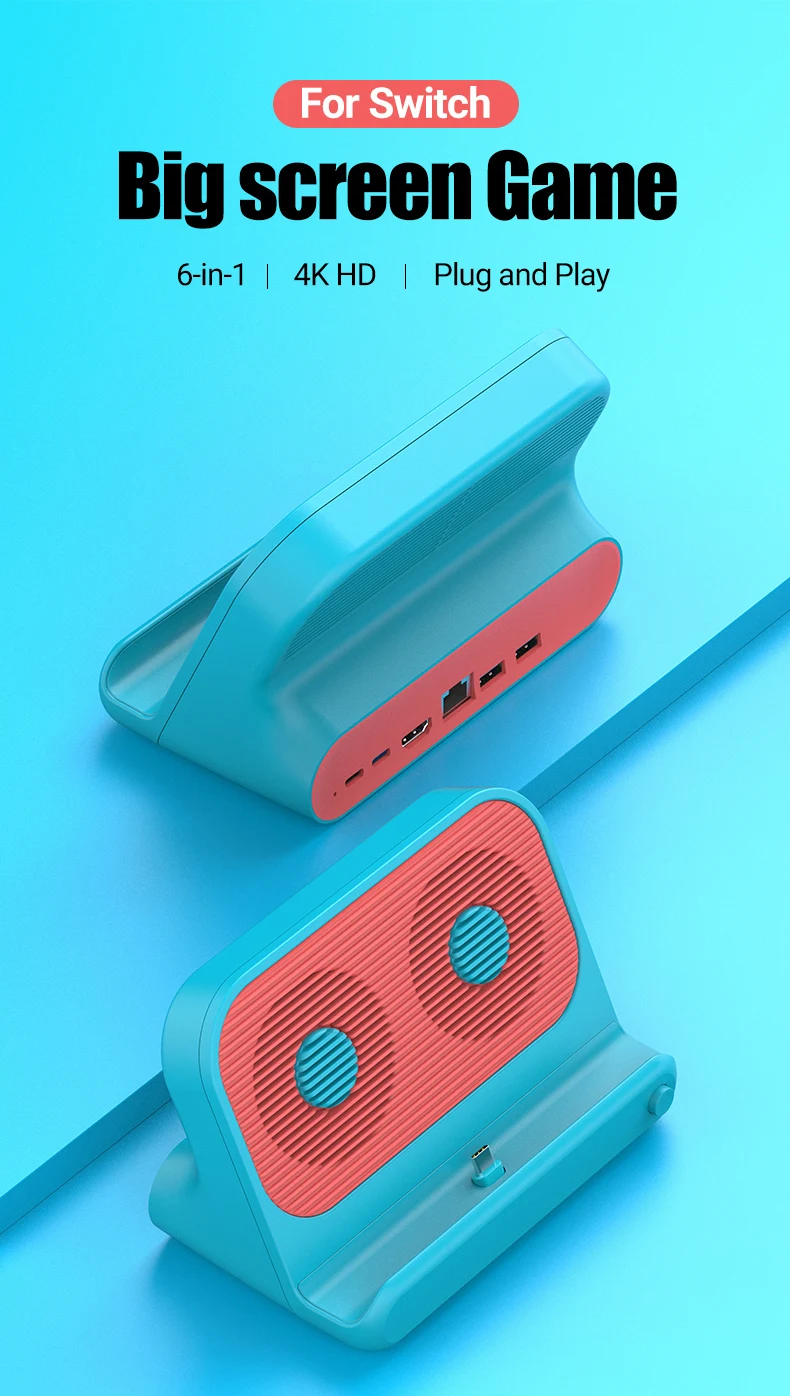 Gopala Cute New Style 6in1 Multifunction Nintendo Switch Dock with 4K HDMI Cooling Fans for Nintendo Switch/Switch OLED