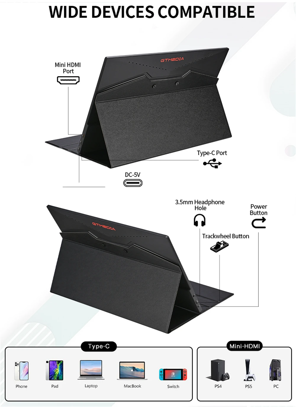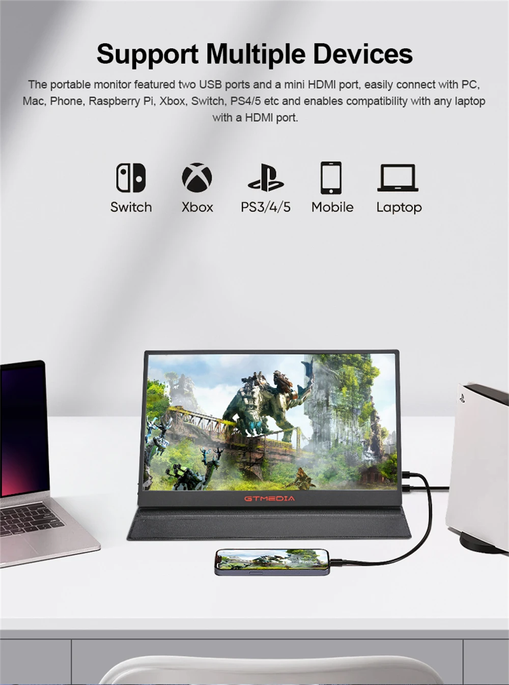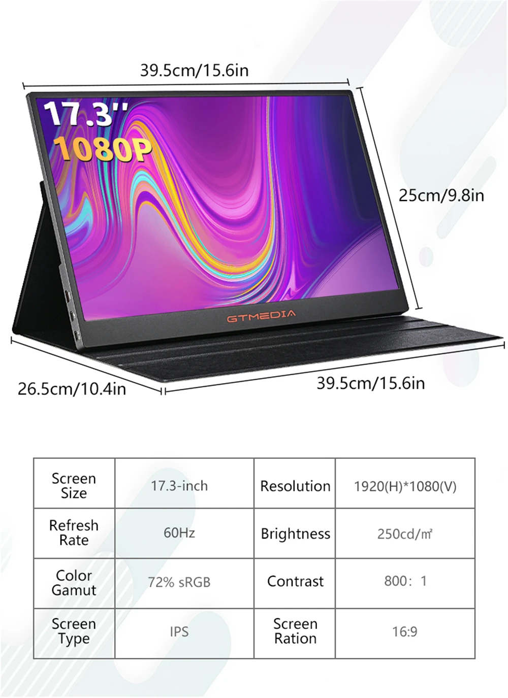 GTMEDIA 17.3 Inch Portable Monitor IPS FullHD Screen 1920*1080 Travel Gaming Display for Laptop/Macbook In Stock At US Warehouse