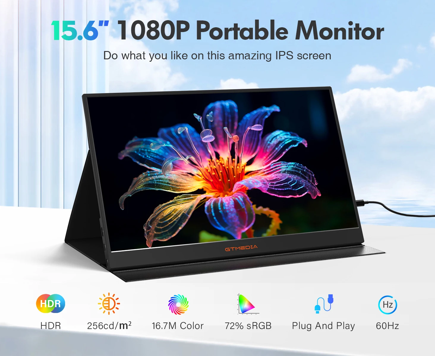 GTMEDIA S15 15.6" Portable Monitor: Multifunctional Connectivity for Global Users