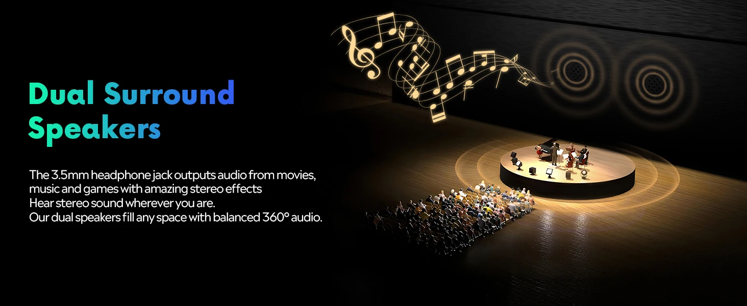 Smart Connectivity: 2×Type-C, 1×mini HDMI, 1×Micro-USB, and 3.5mm AUX ports for versatile device linking.