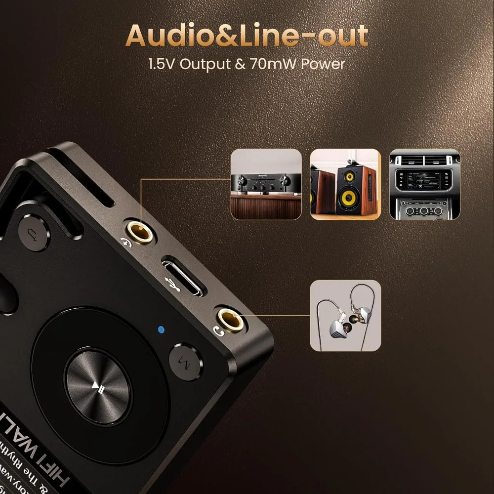 • ♫ [High-Resolution DAC Input] This lossless music player can function as a digital source by connecting it to a USB amp with DAC input, and can also be used as an external decoding amplifier when connected to a mobile phone or computer.