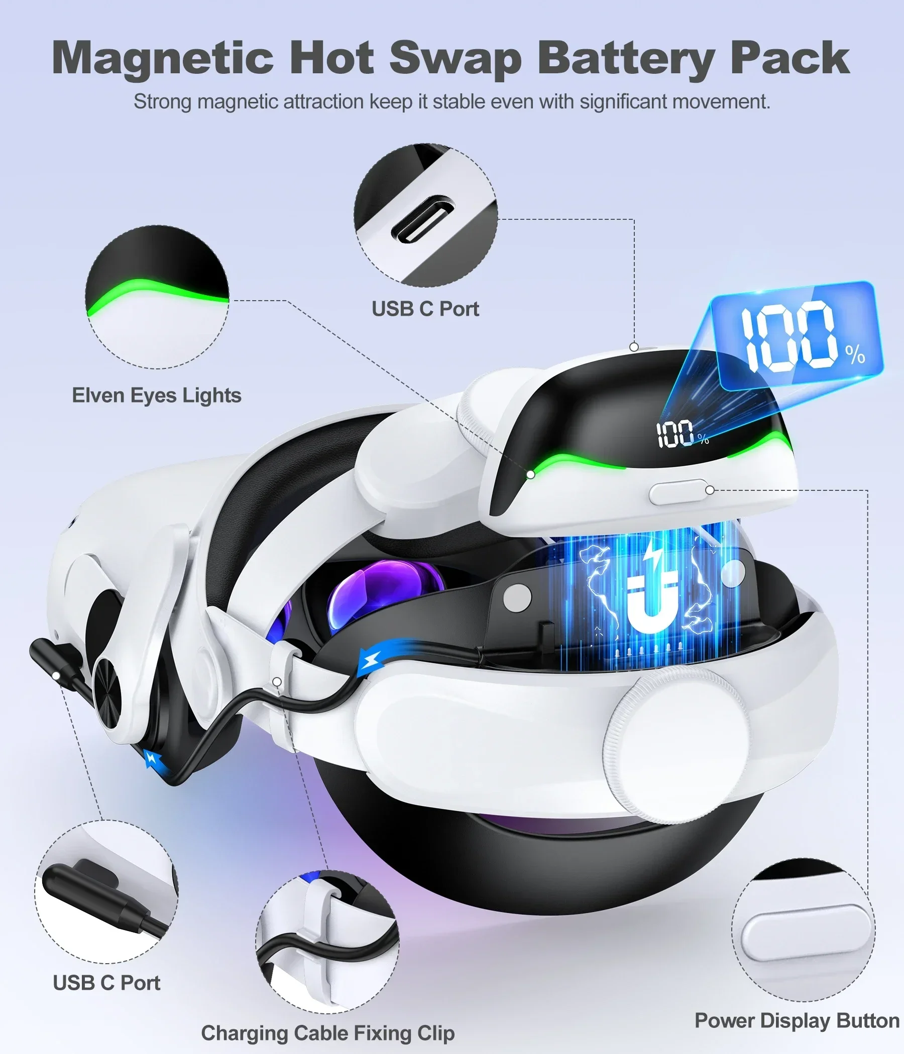 We've upgraded the connection fasteners for oculus accessories head strap more easier and precise to install to the headsets;The head strap for oculus Quest 3/Quest 2 is made of upgraded polymer material, which is incredibly strong. After more than 10000 bending tests, the accessories strap for oculus meta 3/mete 2 is still remains unbroken. High-quality elite strap makes your VR journey more comfortable and hassle-free