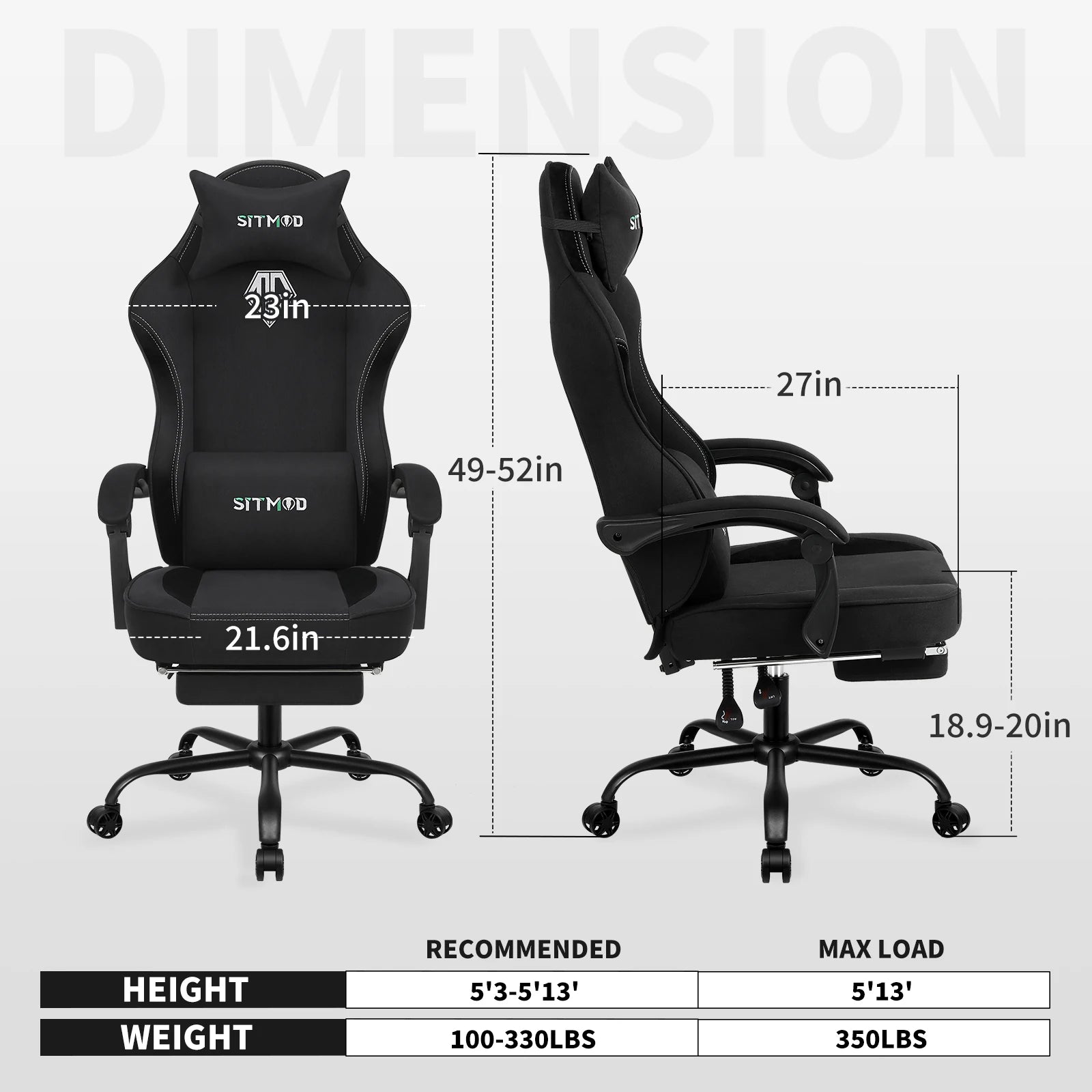 Height Adjustable 360°-Swivel Gaming Chair - Computer Chair With Footrest And Lumbar Support, Headrest For Office Or Gaming