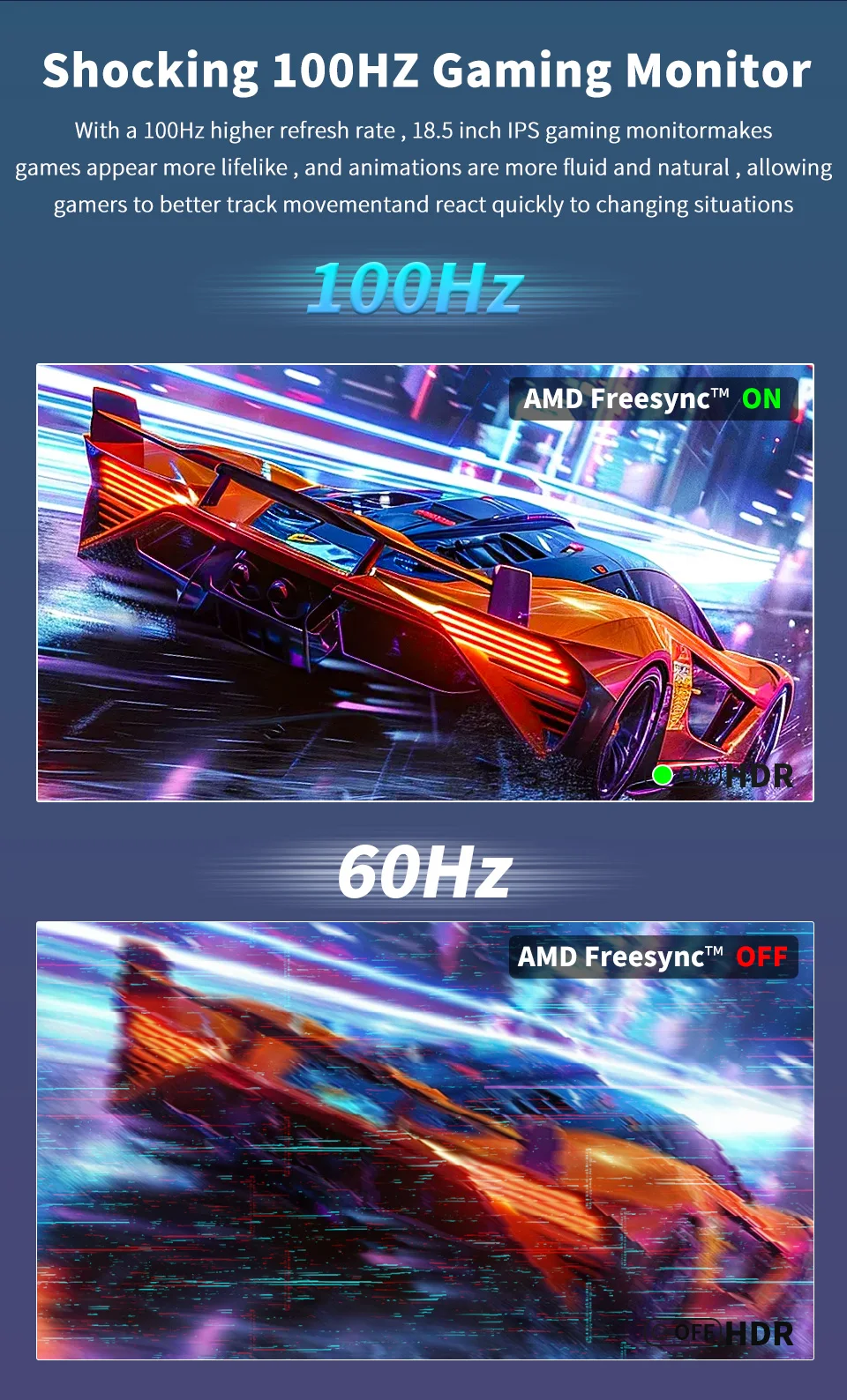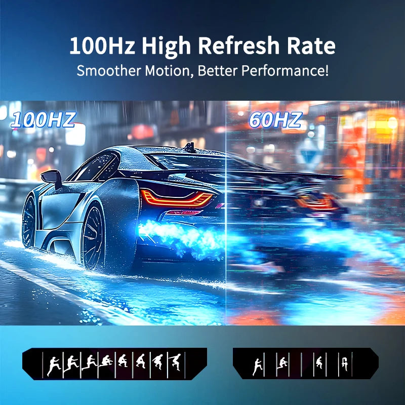 100Hz refresh rate with 100% sRGB (72% NTSC) and 16.7M colors. Reduces lag and motion blur for smoother, more competitive gaming.