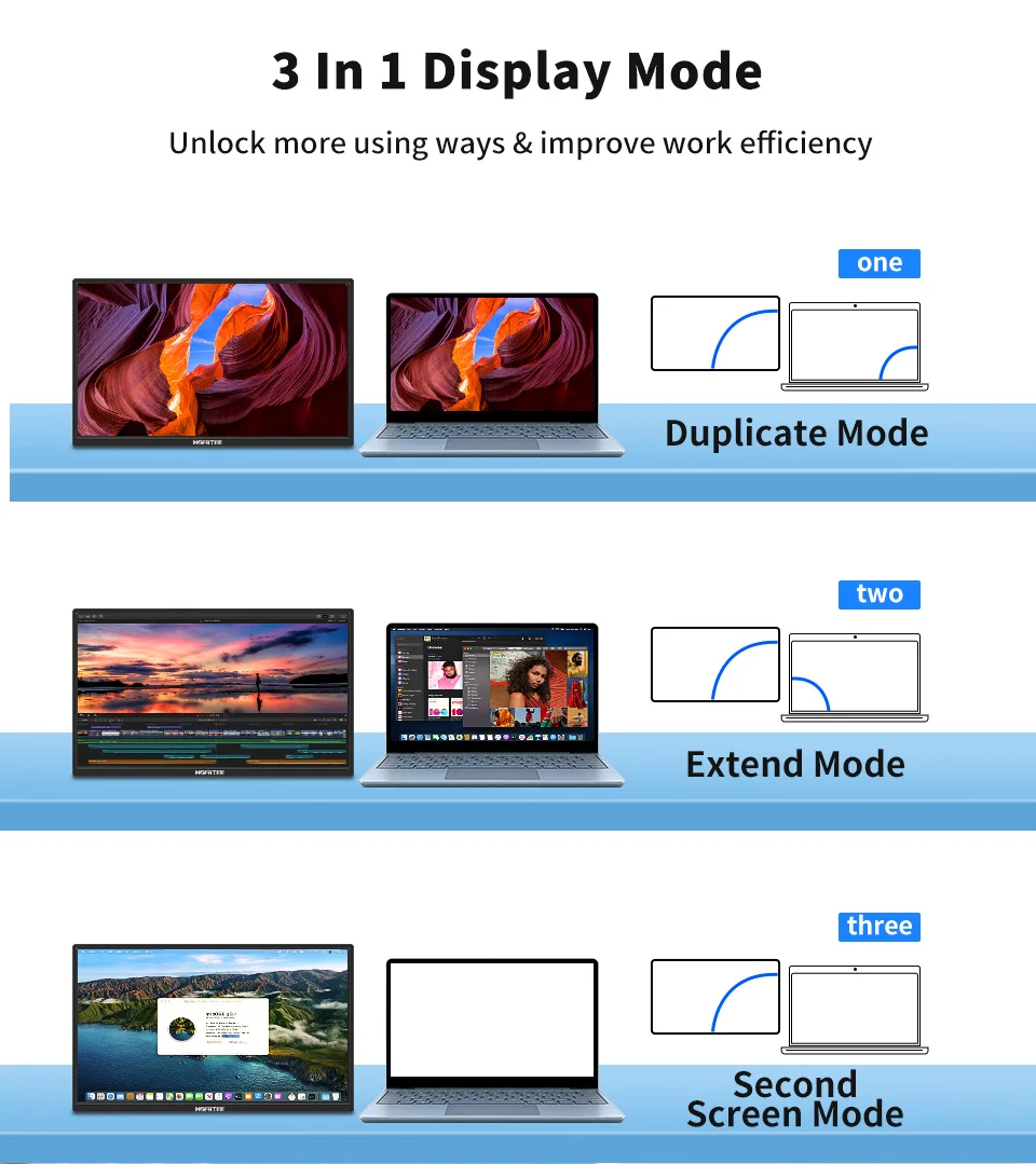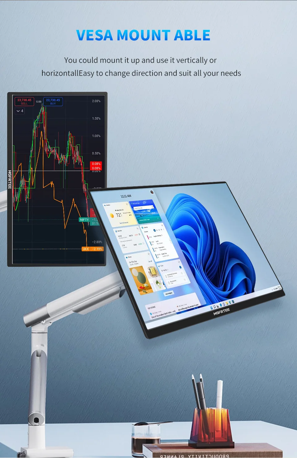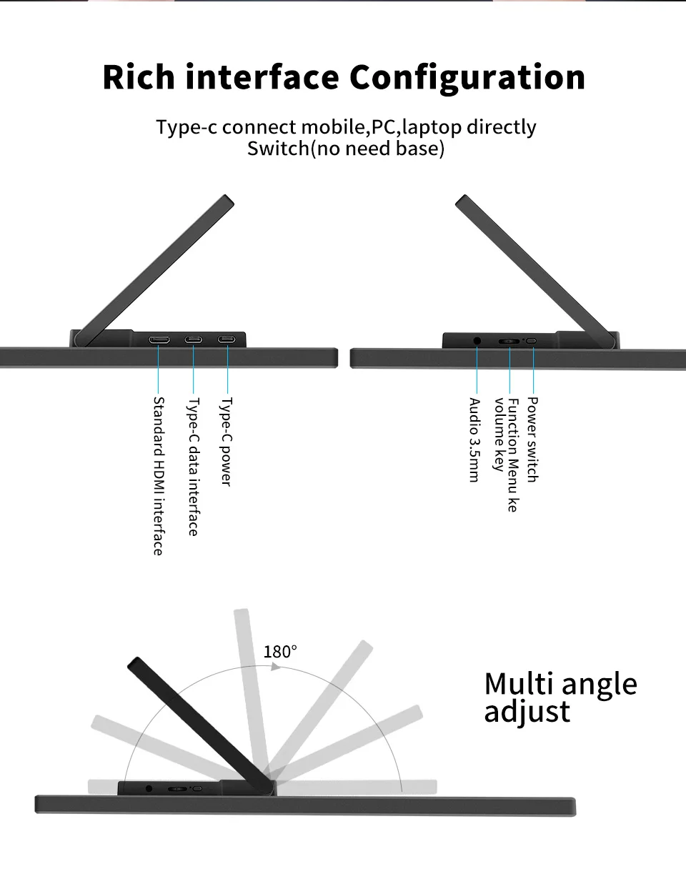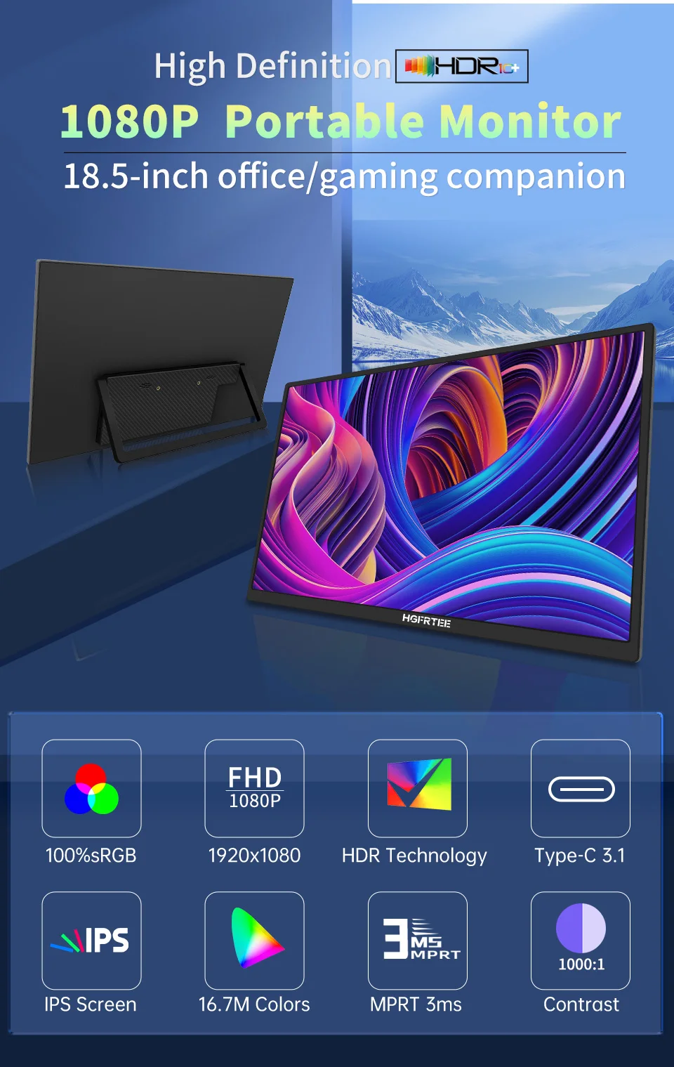 18.5-inch 1080p FHD IPS screen for an immersive viewing experience. Lightweight and ultra-thin (0.31-0.62Inch), perfect for travel, work, or gaming.