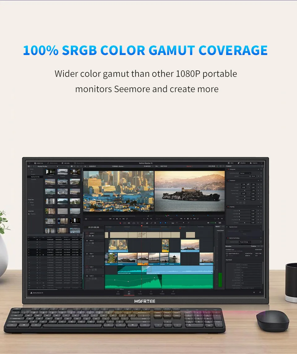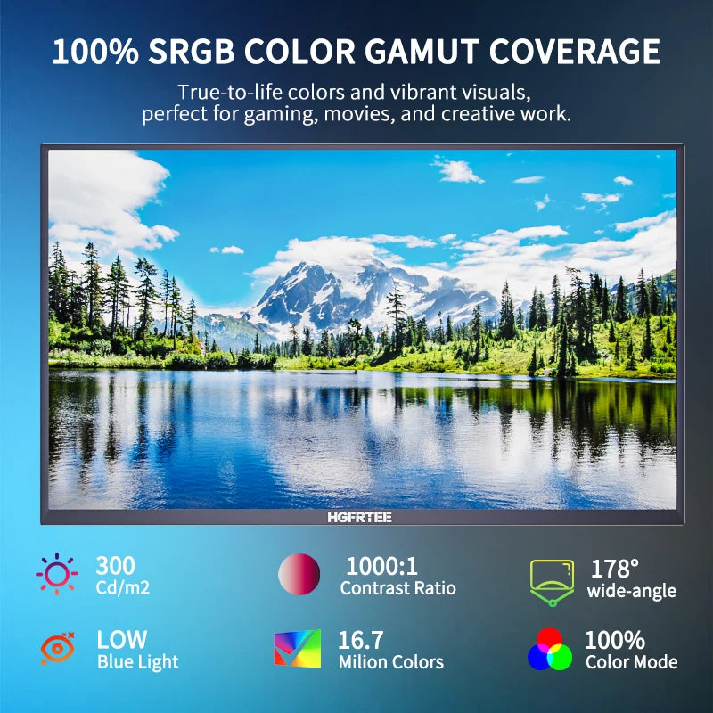 HGFRTEE 18.5Inch Portable Monitor 100% sRGB 100Hz Extended Display for Laptop PC PS5 Switch iPhone with VESA Hole & Back Bracket
