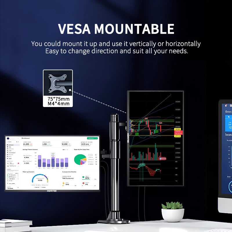 75x75mm VESA mount for wall or desk setup. Built-in stand offers flexible viewing angles for any scenario.