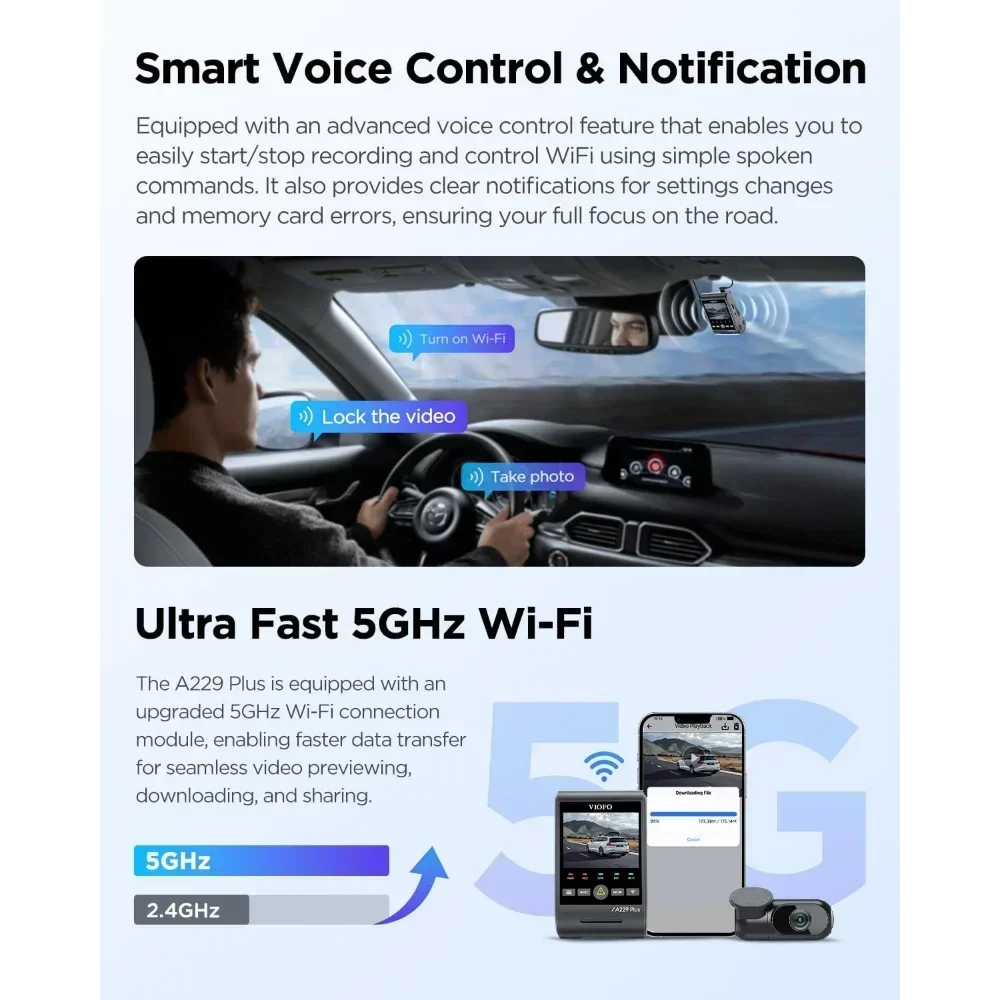 A229 Plus Dash Cam with Dual STARVIS 2 Sensors, 2 Channel HDR, 1440P+1440P Front and Rear, Voice Control Car Dash Camera