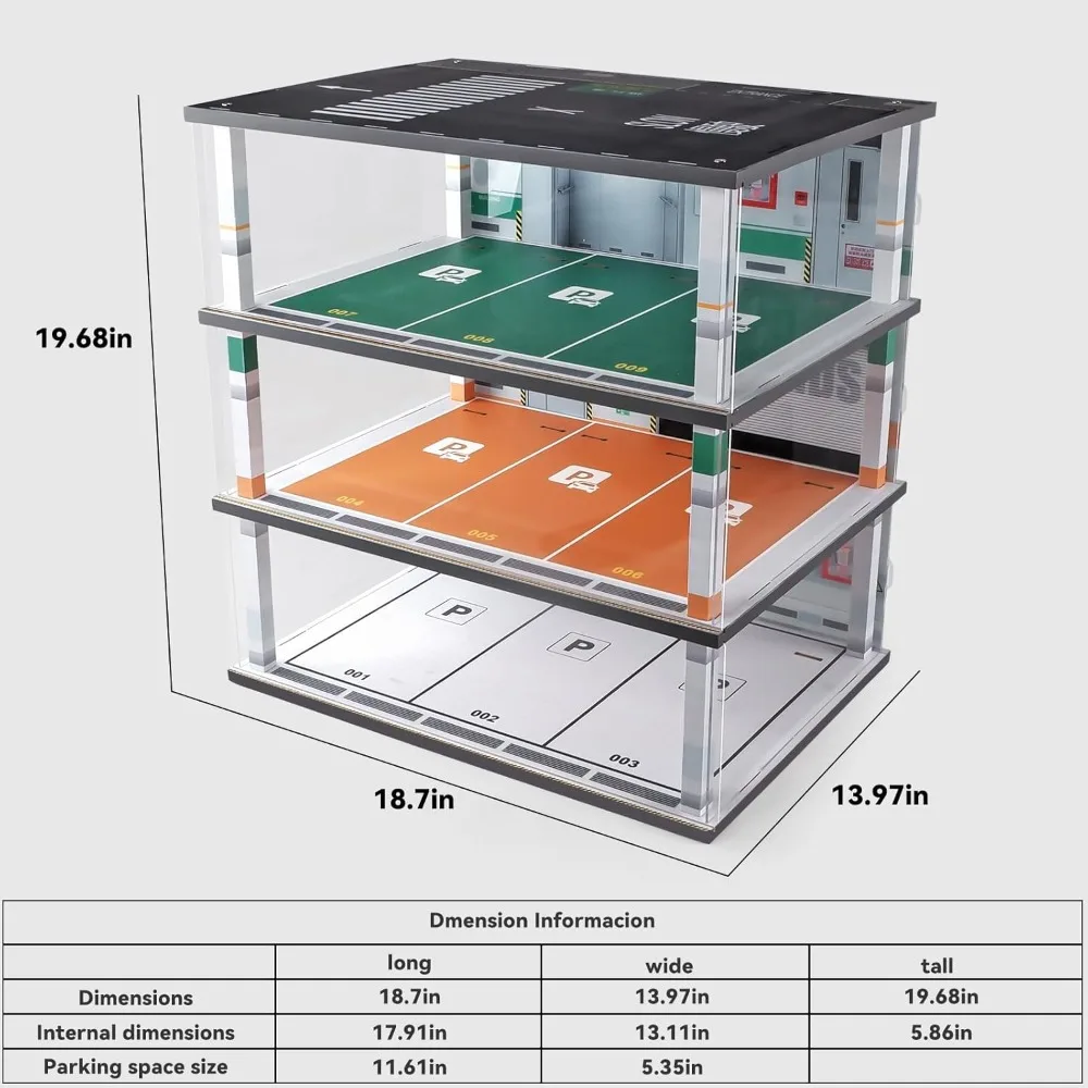 • 【Realistic Garage Scene】The display cabinet is composed of wood and acrylic panels, and the scene is printed with UV laser printing technology, the background picture is clear and looks more real and delicate. It can holds 9 cars.