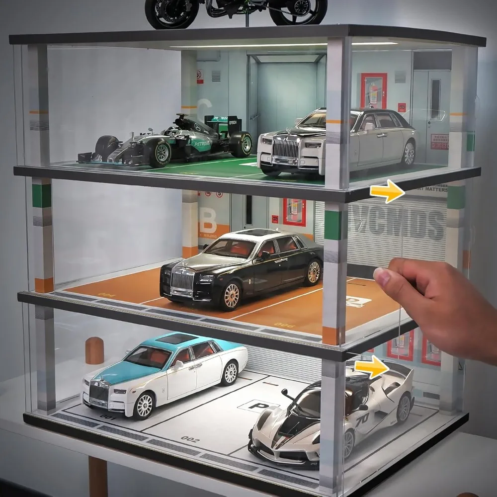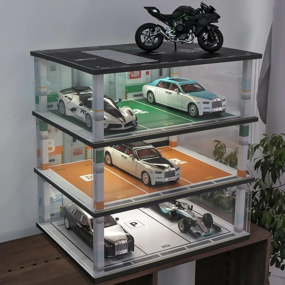 Hot Sale - Model Car Display Case 1:18 Scale Diecast Diorama Garage with Lights for Lego Alloy Car Collectibles Wood