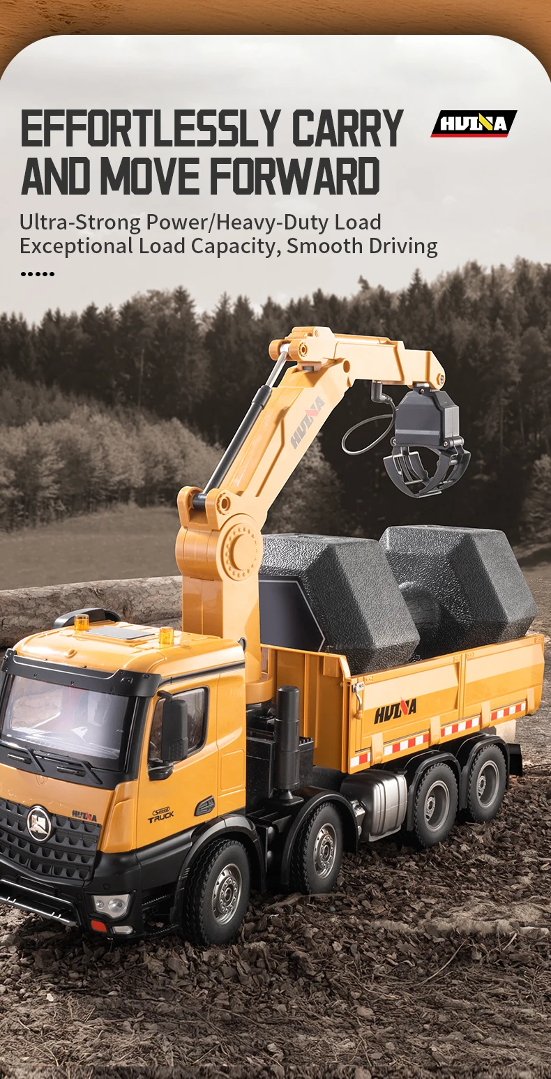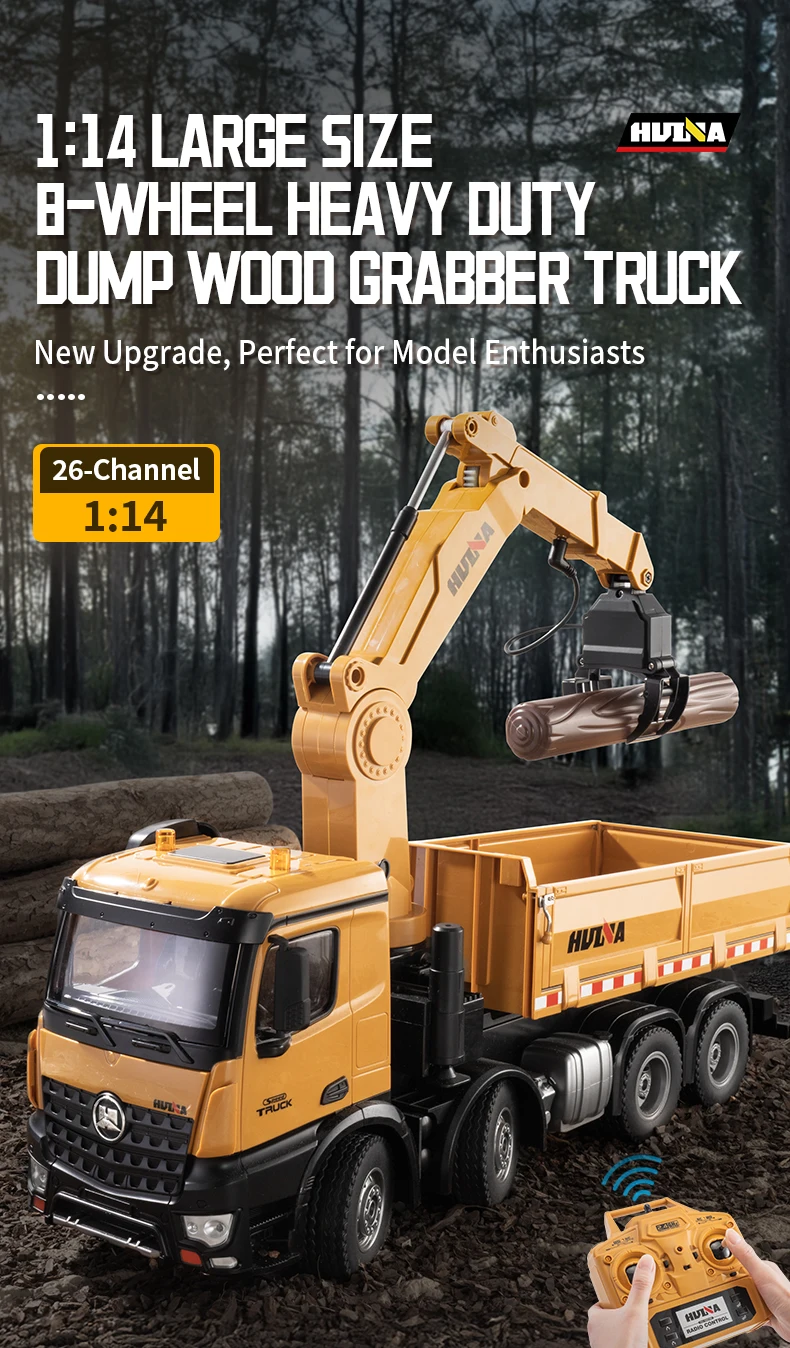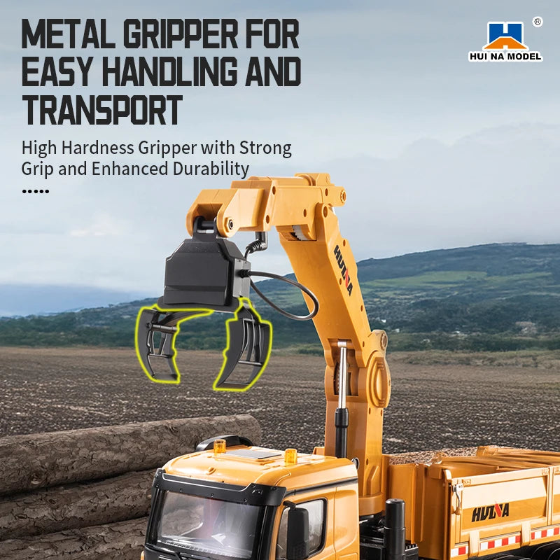 HUINA 1538 26-Channel 1:14 Alloy Remote Control Semi-Alloy Remote Control Vehicle Grab Wood Dump Truck Construction Toy