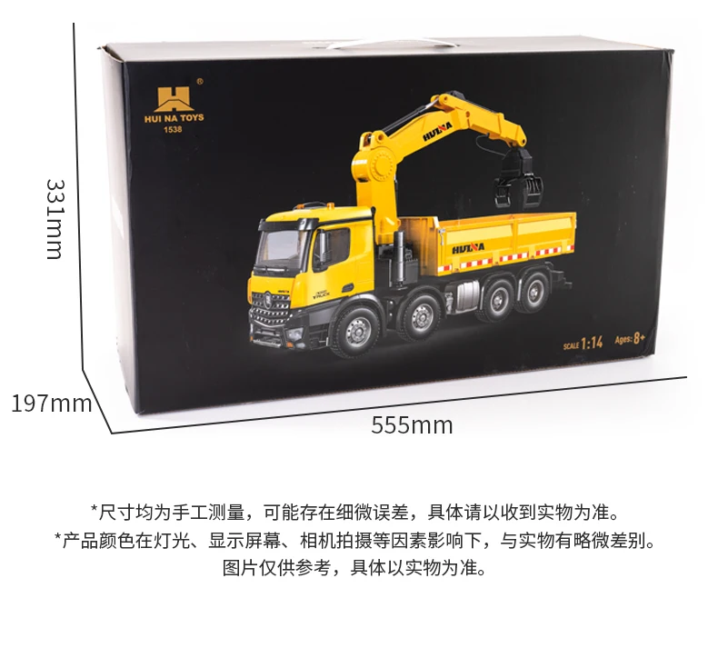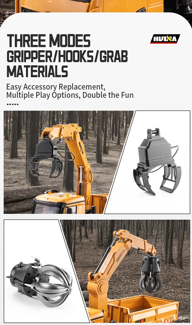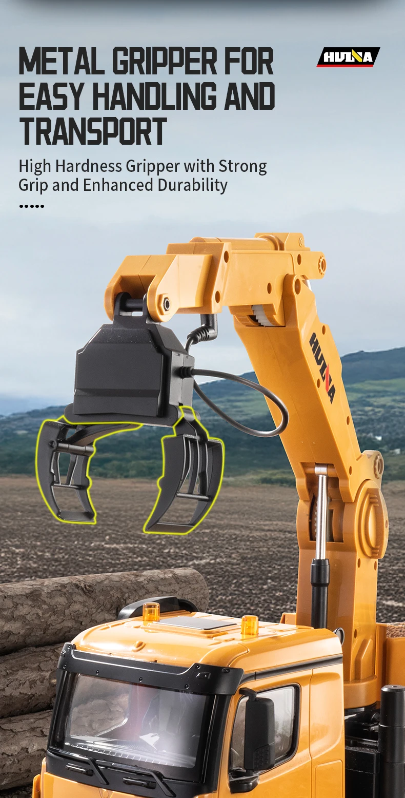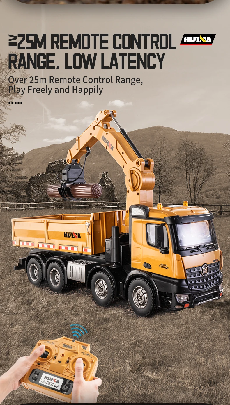 HUINA 1538 26-Channel 1:14 Alloy Remote Control Semi-Alloy Remote Control Vehicle Grab Wood Dump Truck Construction Toy