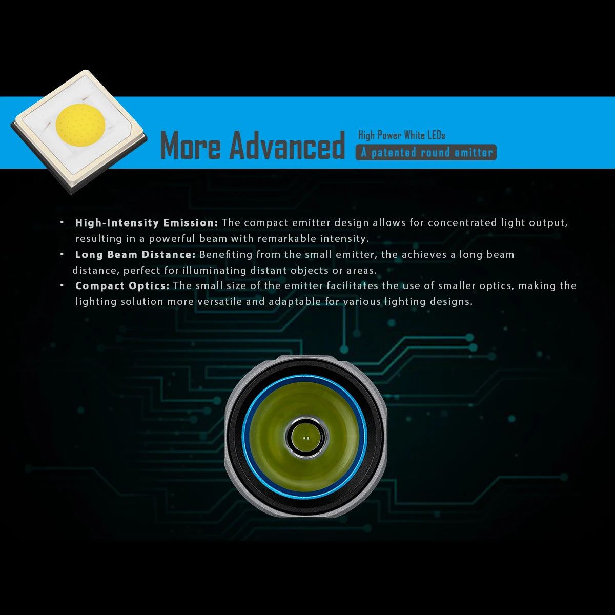 Product Features: Utilizes LUMlNUS latest released long range SFT-25R LED. The lifespan is up to 50,000 hours with a maximum