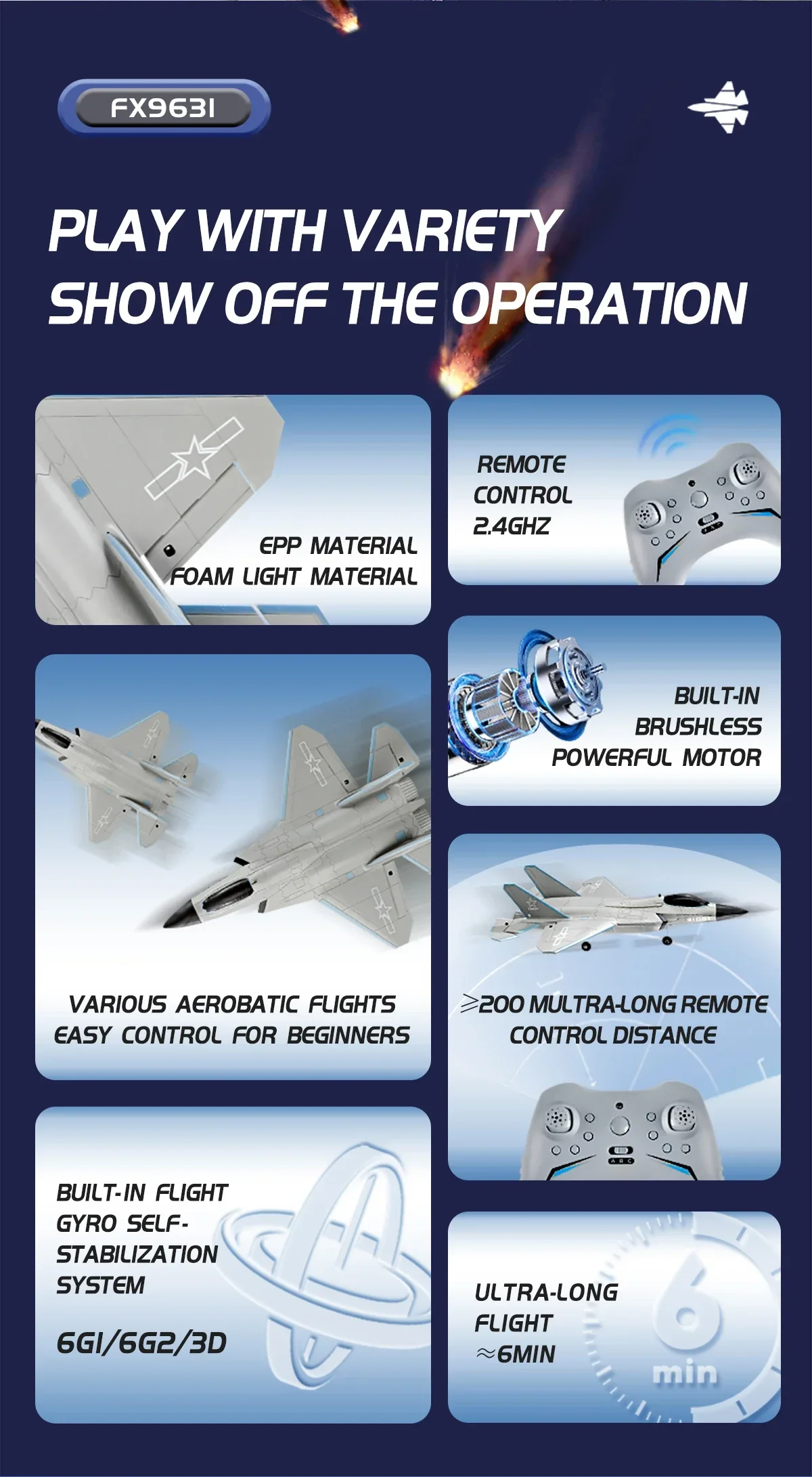 J-35 RC Plane 2.4G 4 Channels Airplane FX9631 3D 6G Brushless EPP Remote Control Stunt Aircraft Toys for Adult Children