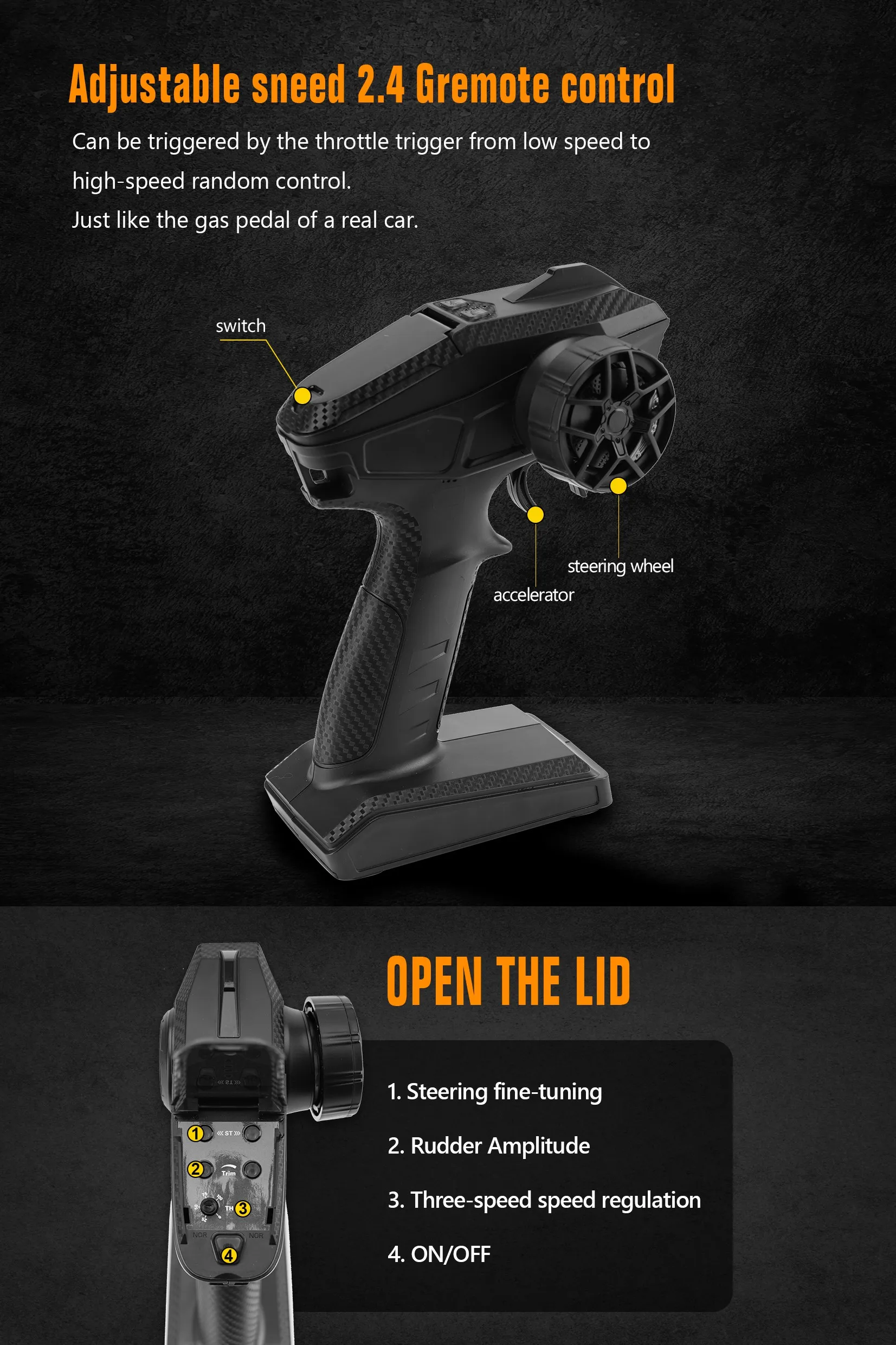 7. Strong suspension system with front and rear anti roll bars, with a super high ground clearance of 50MM. Greatly improve the handling and play ability of the entire vehicle