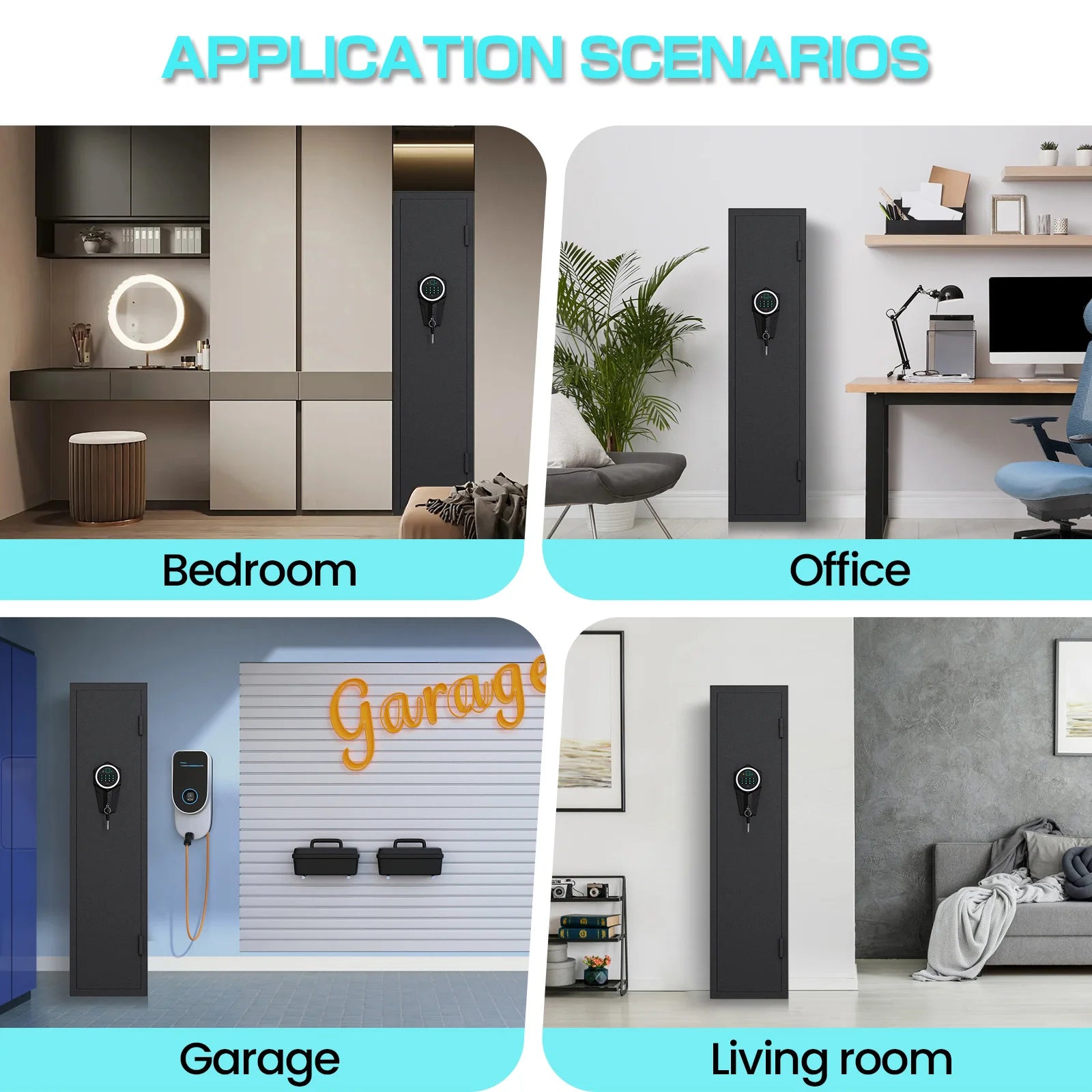 Equipped with a dual alarm system, our rifle gun safe offers enhanced security measures. The vibration alarm is triggered by shaking or moving the gun safe, while an input error alarm activates after 3 incorrect password attempts. The buzzer will sound for 20 second when the alarm is activated, which can be heard throughout the house. The silent mode option ensures discreet operation, ideal for preventing theft or disturbances.