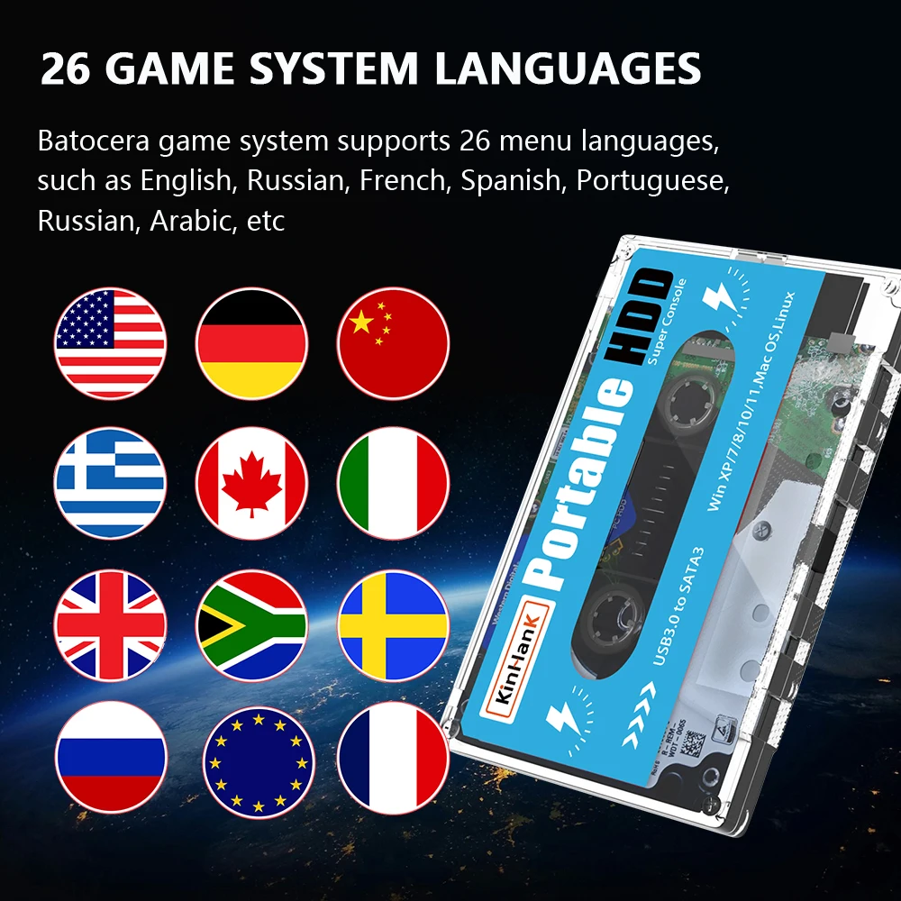 Kinhank Super Console X Batocera 33 500G Hard Drive Disk 110000+ Retro Video Games For PS1/SS/DC/MAME/ARCADE Plug and Play