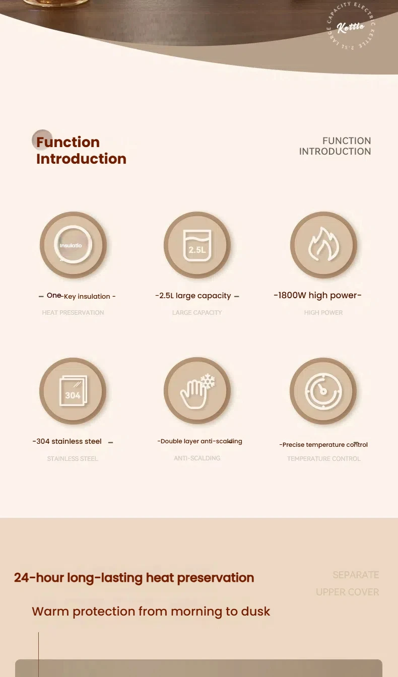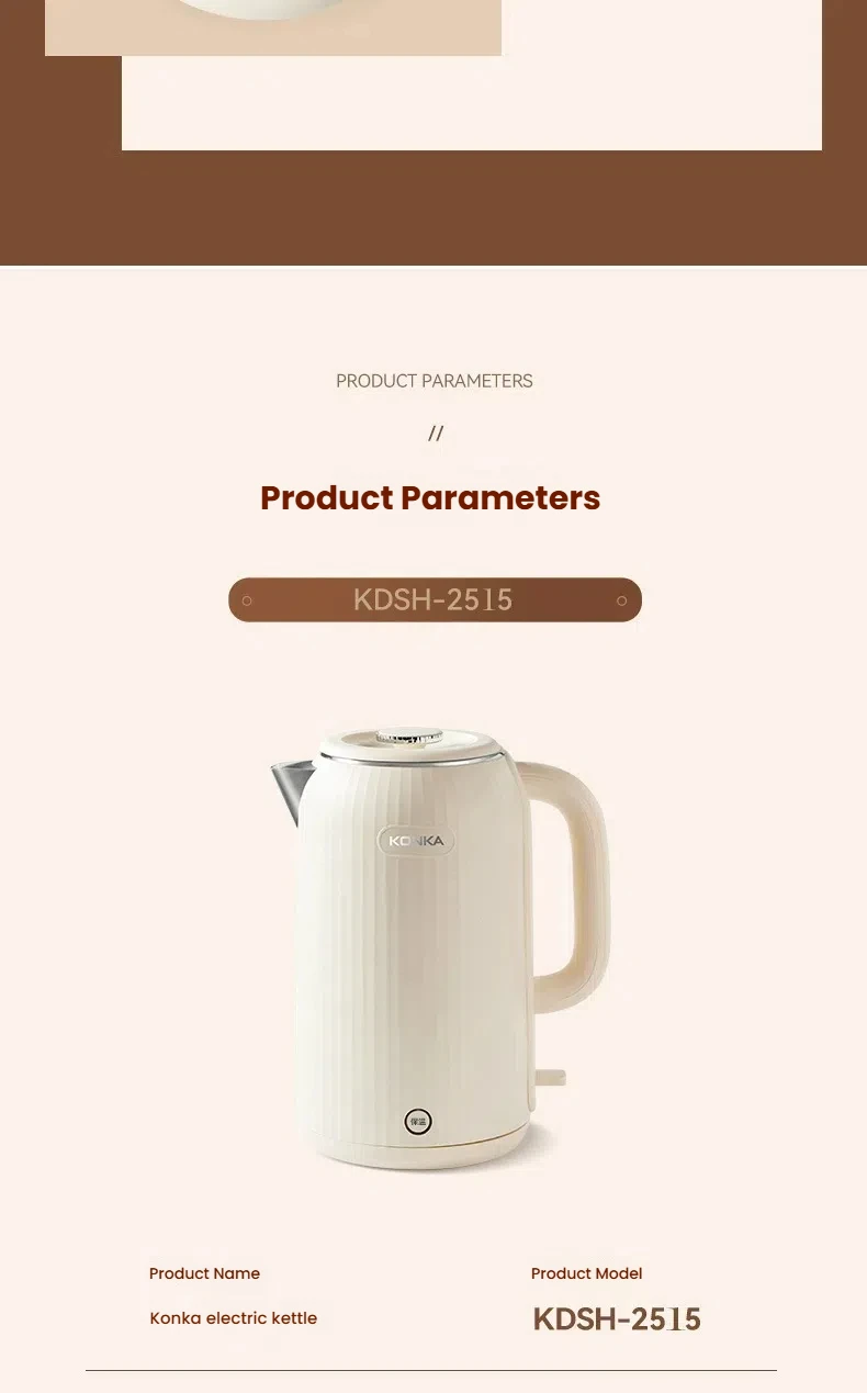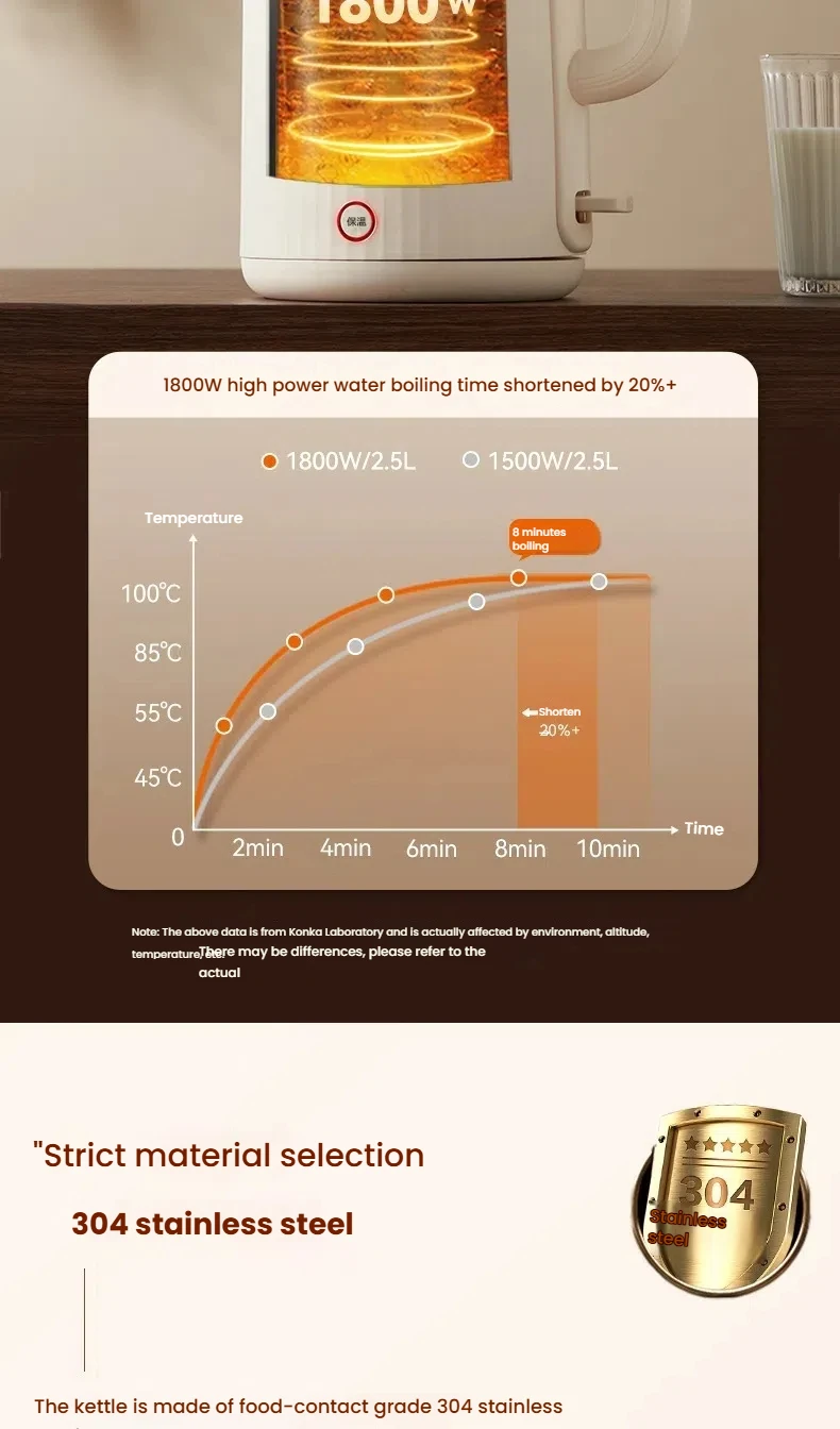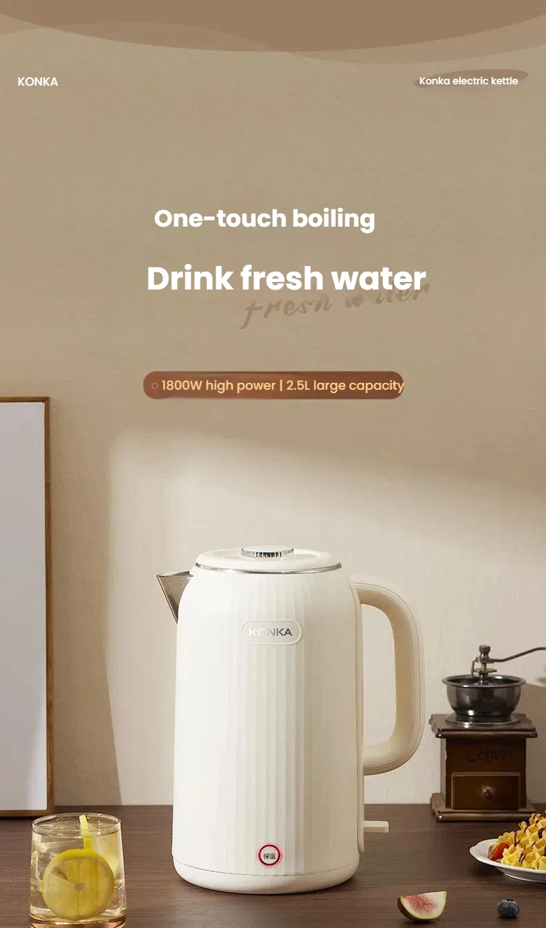KONKA KDSH-2513 2.5L Electric Kettle 1800W Fast Boiling Water Heater Food-Grade 304 Inner Pot Auto Shut-Off &Dry Burn Protectio