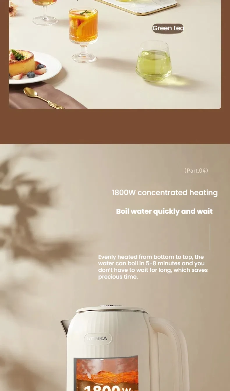 ✔ 1800W Rapid Heating – Boils water quickly with efficient energy use.