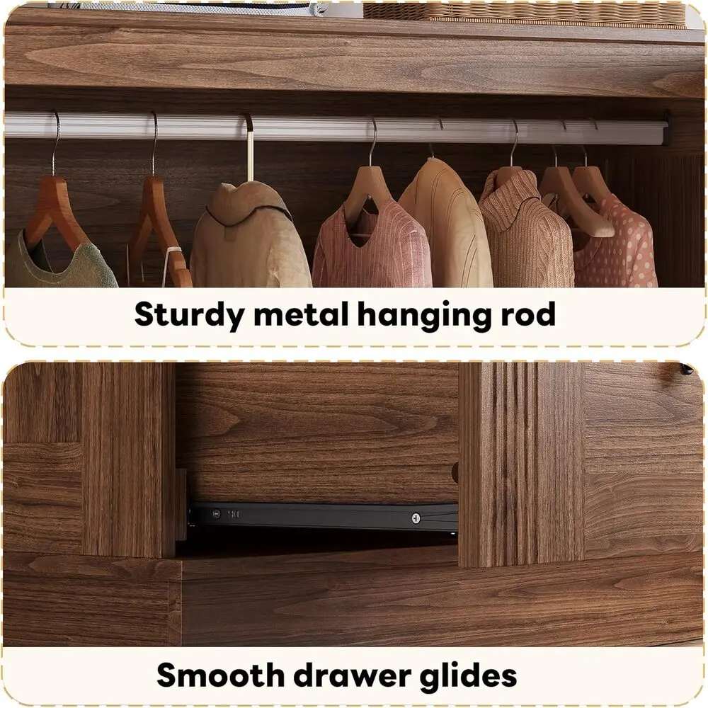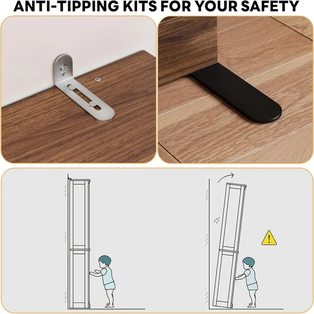 Enhanced Safety with Anti-Tip Kit Included: Safety comes first. This armoire wardrobe closet with drawers comes with a wall-anchoring anti-tip kit to prevent tipping accidents. Rest easy knowing your wardrobe cabinet stays securely in place, even in active family environments.