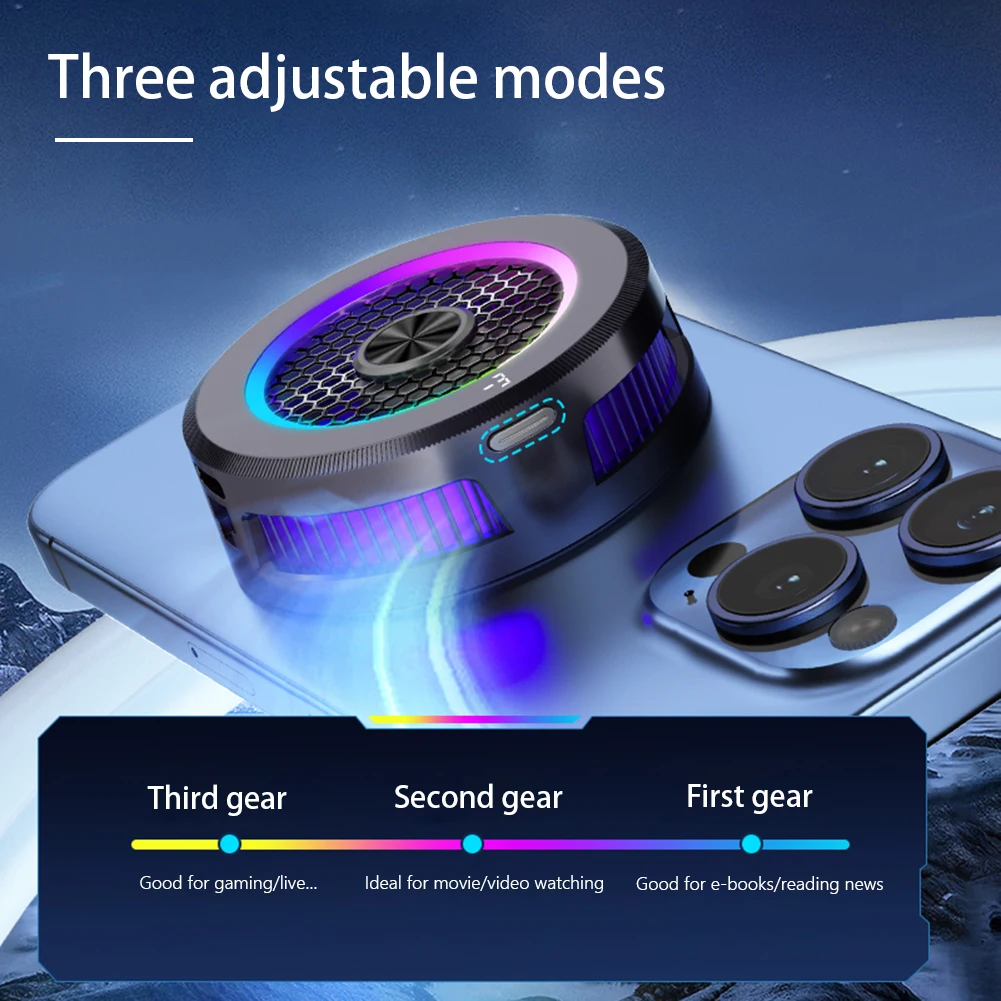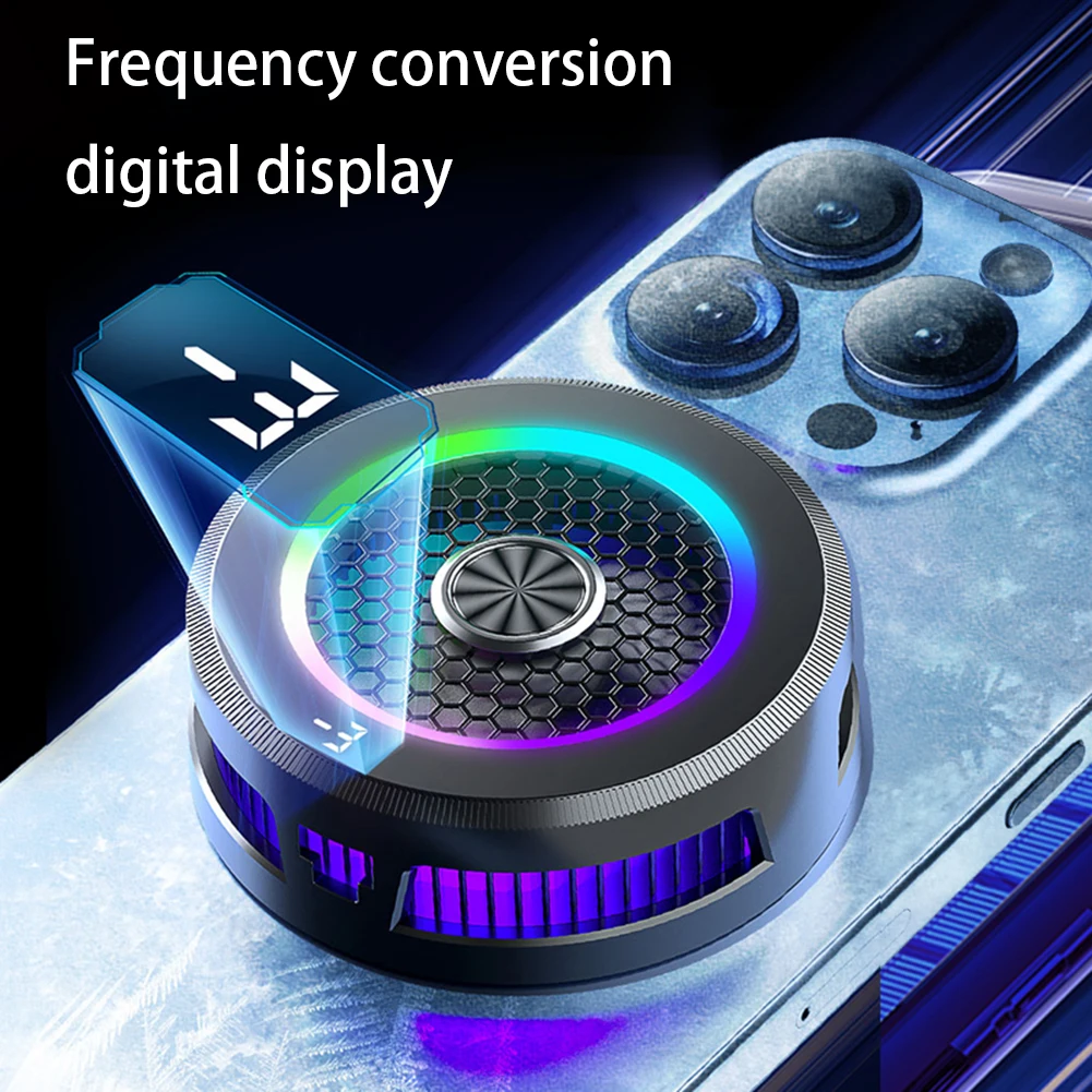 Magnetic & Back-clip Mobile Gaming Cooling Fan Cooler Digital Display Mobile Phone Radiator RGB Lighting Semiconductor Refrigeration Cooling Phone Radiator 3 Modes for Android Iphone PUBG Game Cooler
