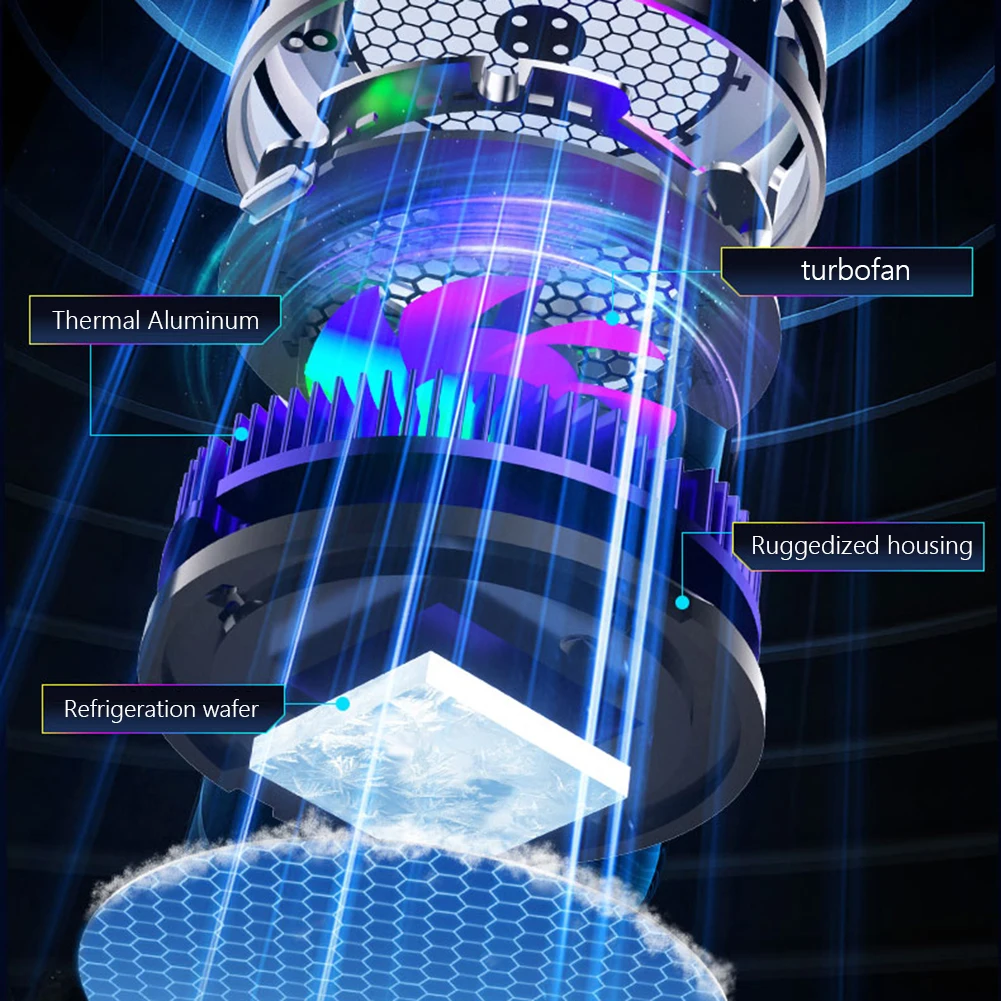 Feature: 1. Designed for Mobile Gaming and Streaming: The phone cooler is a stylishly designed accessory ideal for PUBG mobile game enthusiasts, live streamers, bloggers, and anyone who uses their device for extended periods. With an adjustable power control button and three cooling settings, this cooler not only offers rapid temperature reduction but also features cool lighting effects and a frequency conversion digital display for real-time temperature status, enhancing both performance and visual appeal during gaming or streaming sessions. 2. Magnetic Absorption and Clip-on Dual Mode: This innovative phone fan offers a dual-mode functionality with a strong magnetic absorption feature for a secure, shake-proof grip on phones with built-in magnets or those equipped with a magnetic sticker. For phones without magnetic capabilities, the detachable elastic back clip provides a reliable alternative, ensuring compatibility with most smartphones. Whether you prefer the convenience of magnetic attachment or the security of a clip-on, this cooler meets your needs. 3. RGB Lighting Effects: Equipped with dazzling RGB 3-color LED marquee lighting effects, the mobile gaming cooling fan cooler not only cools your device but does so with style. Reminiscent of an engine core, it creates an immersive gaming atmosphere with lights that illuminate the fan blades, offering a visually stunning and practical accessory for any gaming setup. 4. Three Adjustable Cooling Modes: The mobile phone radiator features three adjustable modes to cater to different cooling needs across various scenarios such as work, entertainment, and gaming. With a simple press of the adjustment button, users can change the fan speed, power, and temperature to suit activities ranging from reading e-books or watching movies to intense gaming or live streaming, ensuring optimal device performance. 5. Rapid and Efficient Cooling: Constructed from aluminum alloy and featuring a large area of heat-dissipating aluminum fins, the semiconductor refrigeration cooling phone radiator utilizes semiconductor technology, following the same cooling principle as refrigerators, rather than mere fan cooling. The upgraded TEC cooling chip increases the contact area for rapid cooling and heat dissipation. Magnetic cooling ensures seamless contact with the phone for uniform heat distribution, while its low-noise design, featuring a quiet motor and turbofan blades, ensures efficient cooling without obstructing hand movements or interfering with your gaming or Vlog content. Specification: Origin: Mainland China Product name: Magnetic suction + back clip two-in-one semiconductor mobile phone radiator Product model: AL19 Product color: black Main material: ABS+ aluminum alloy + refrigeration sheet Working power supply: 5V/ 2A max Product power: 15W Product interface: Type-C output/input Product lighting effect: RGB three-color breathing light Product size: 60x60x24mm Product net weight: 65g Magnetic mode: Mobile phones with built-in magnetic absorption function (compatible with iPhone 15 14 13 12 series models) can be directly adsorbed Other brands and models without magnetic function need to be equipped with magnetic patches to use this mode Back clip mode: Insert the back clip on the radiator from top to bottom, and then clip the radiator on the phone.Suitable for most phone sizes
