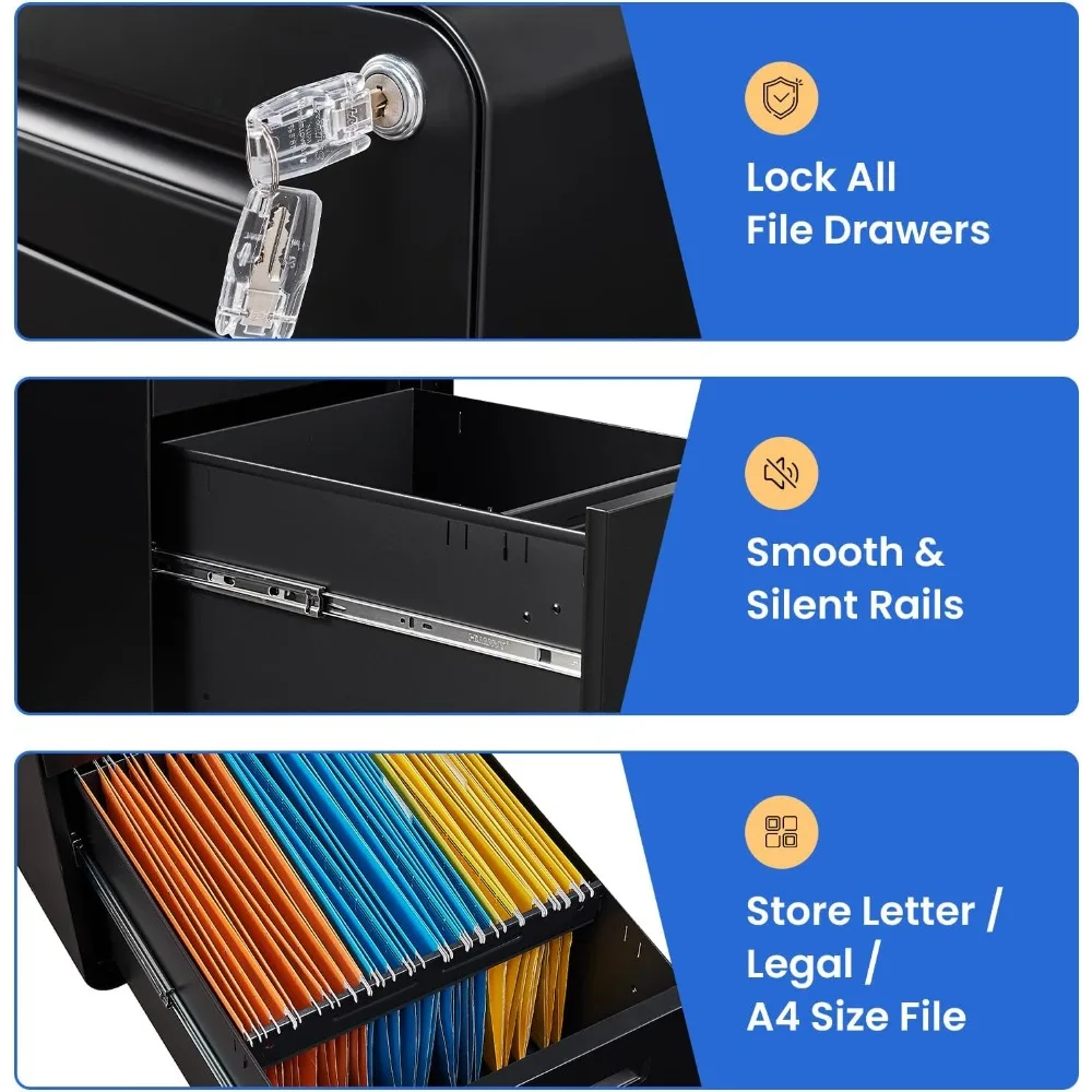 【Locking Cabinet for Security】: A lock is set at the top of our file cabinet and is designed to lock all three drawers. This helps to keep your sensitive documents secure from prying eyes. You are provided with two keys for the lock.
