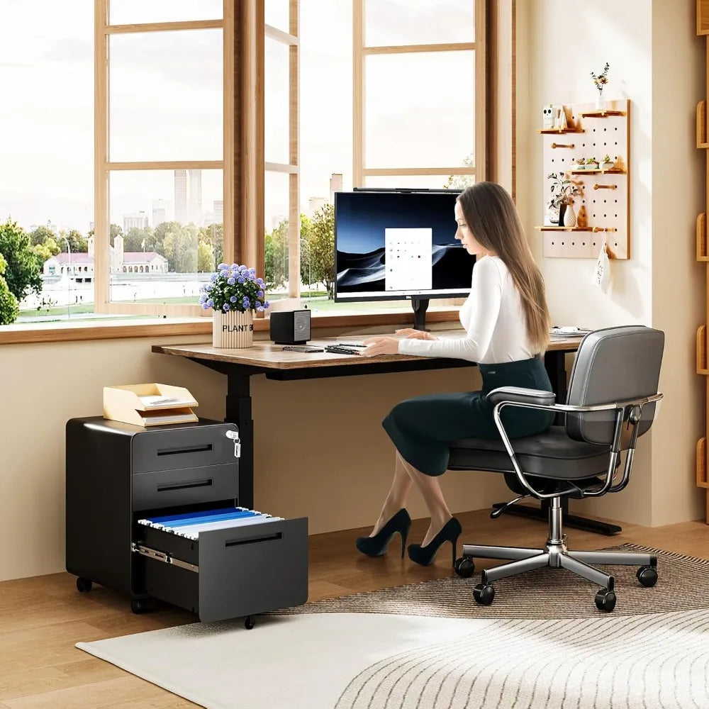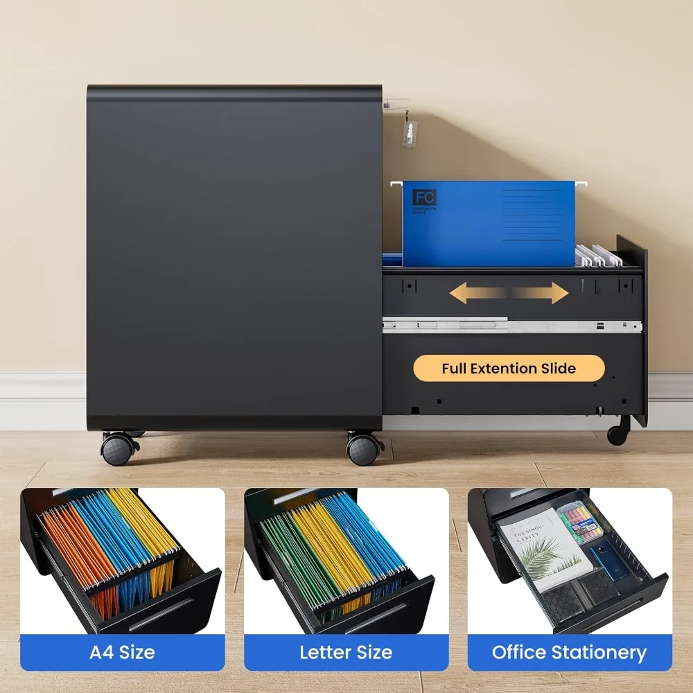 Mobile Filing Cabinet 3 Drawer, Rolling Small File Cabinet with Keys Under Desk, Compact Office Organizer w/Lockable Drawers & A