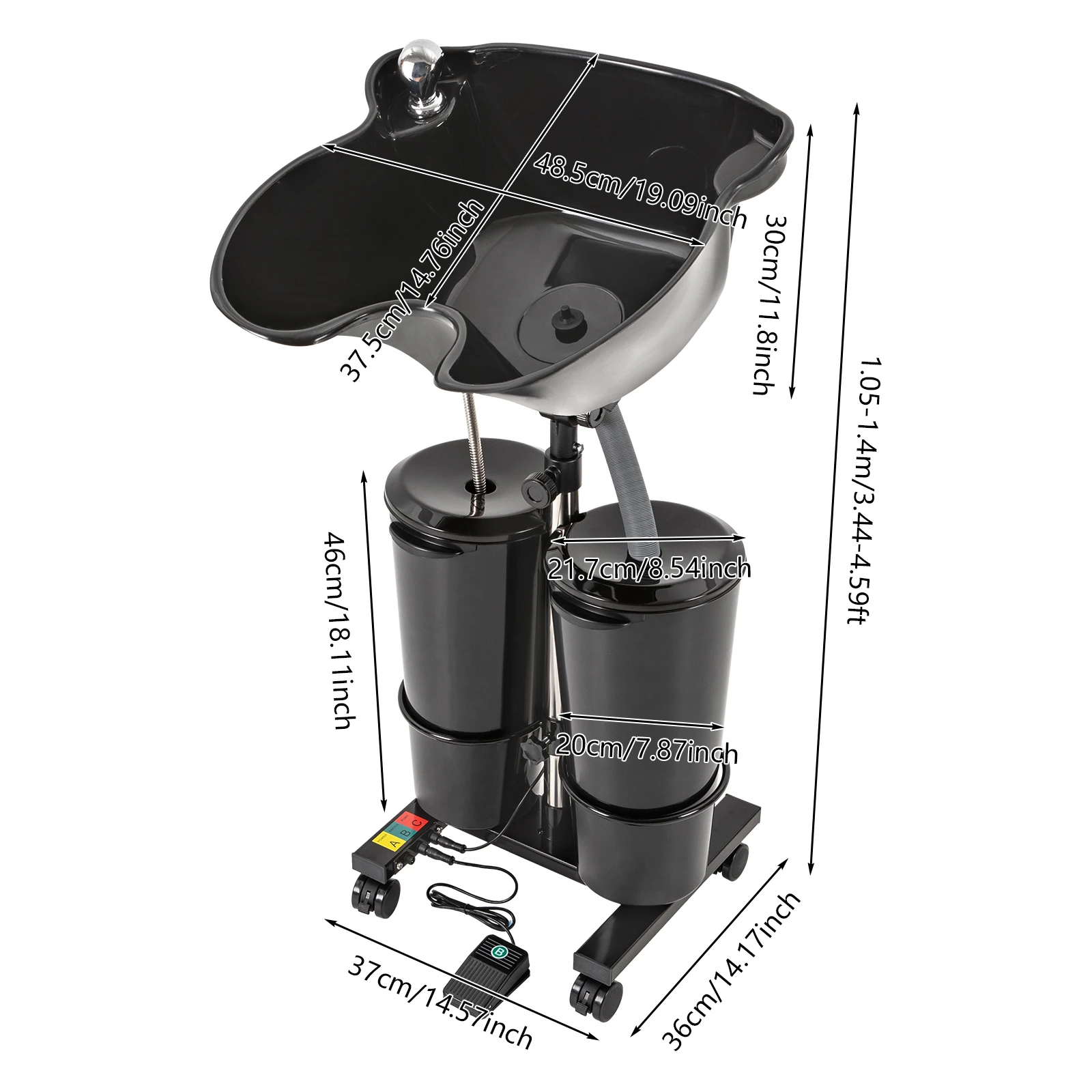 Mobile Hair Wash Basin Height Adjustable For Salon Spa Portable Shampoo Basin with 2 Water Buckets