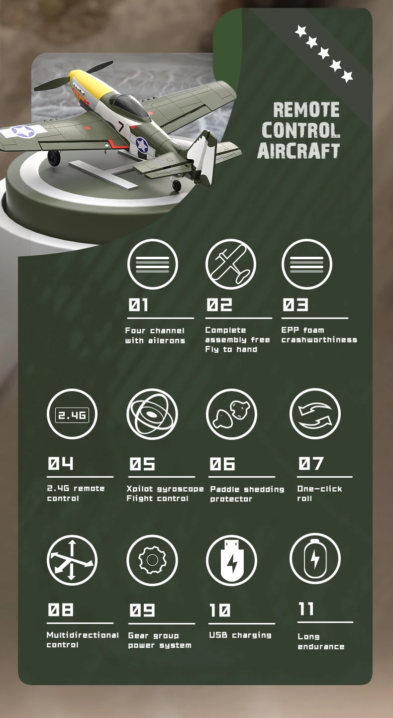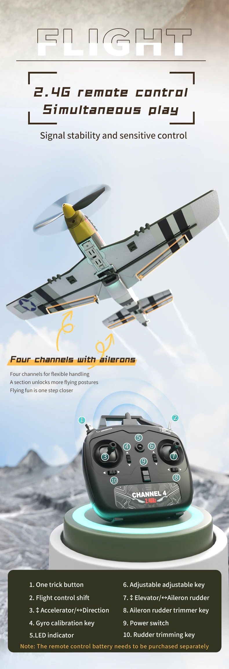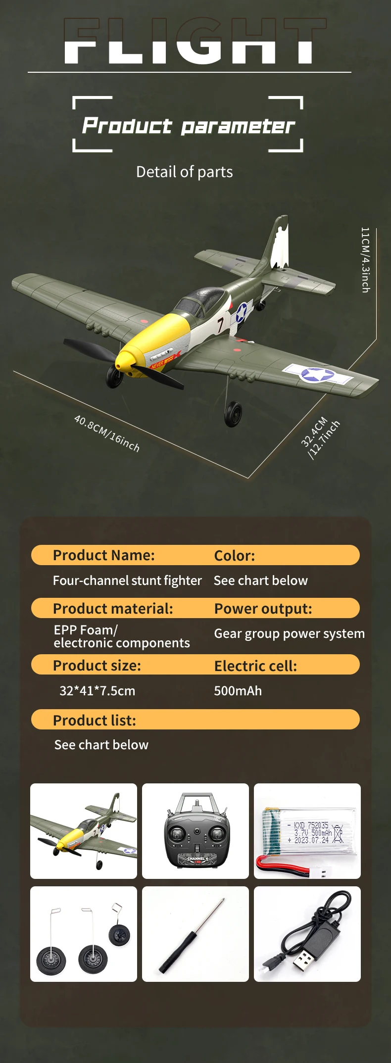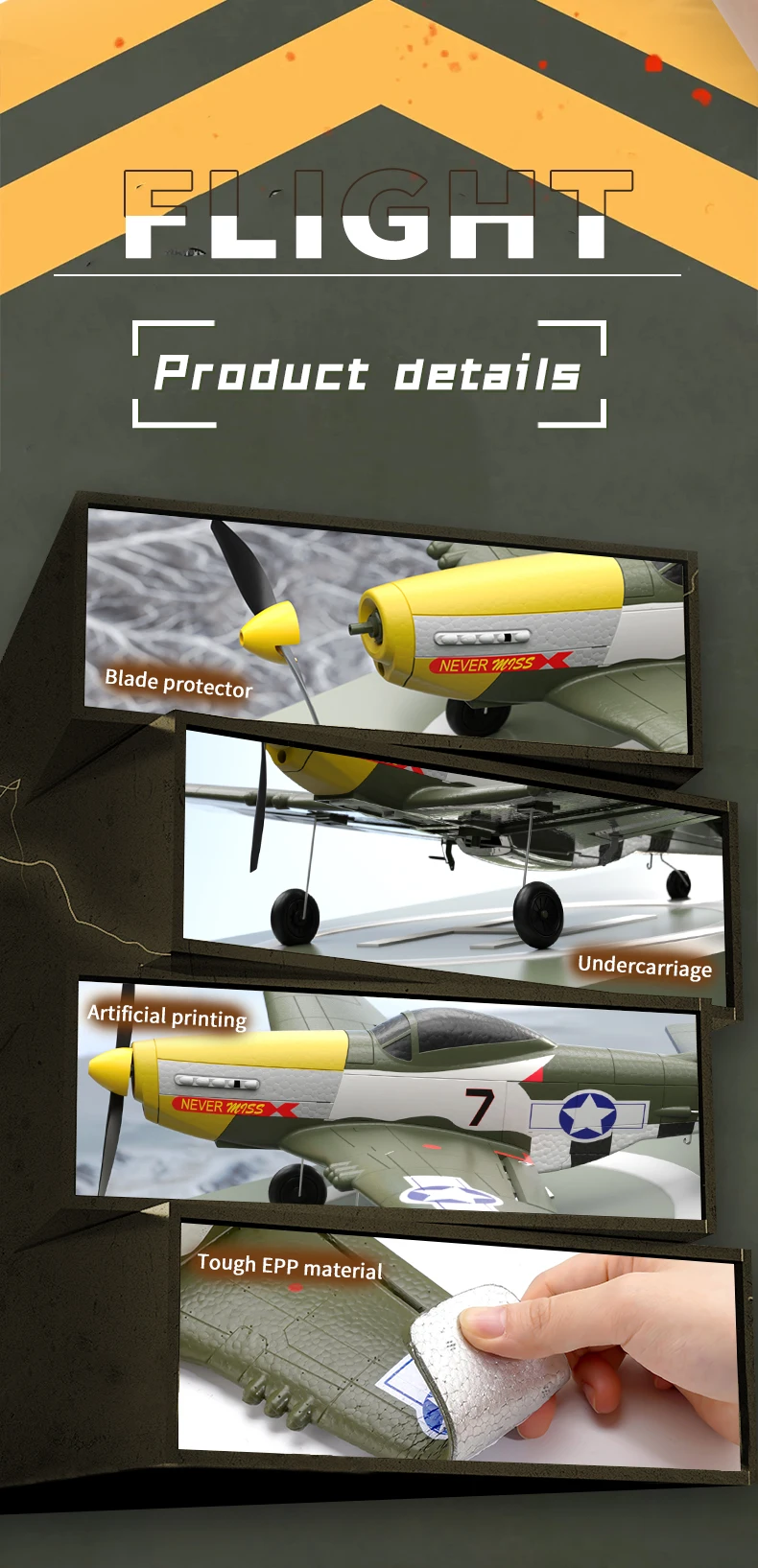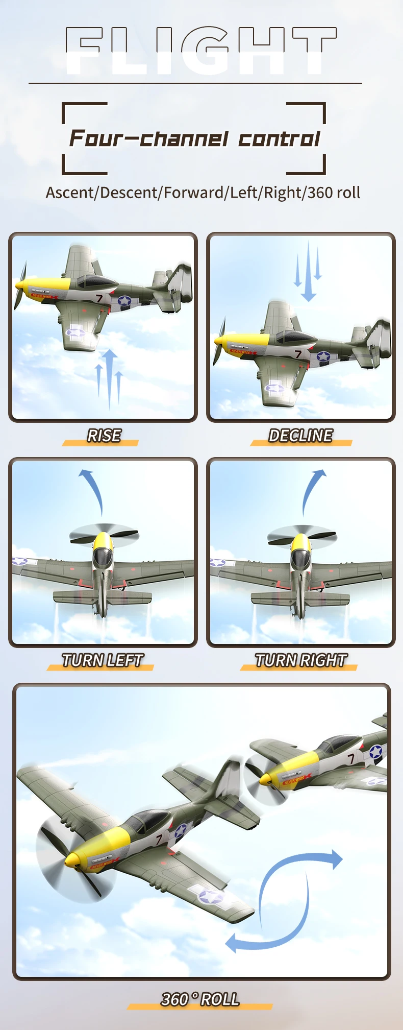 New P51 Mustang rc Plane 2.4G 4CH 6 Axis 410MM Wingspan Foam Fighter One Key Aerobatic RTF Aircraft Glider Toys Gifts for child