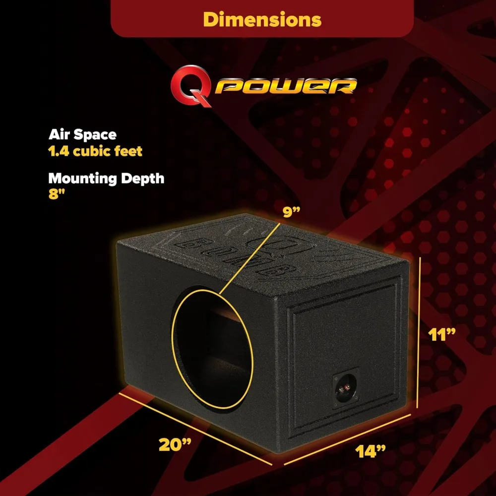 - Single Vented Chamber Design: QPower's 10 inch subwoofer that ensures easy integration into any sound system; Ideal 10 inch sub box for an amplified car audio experience