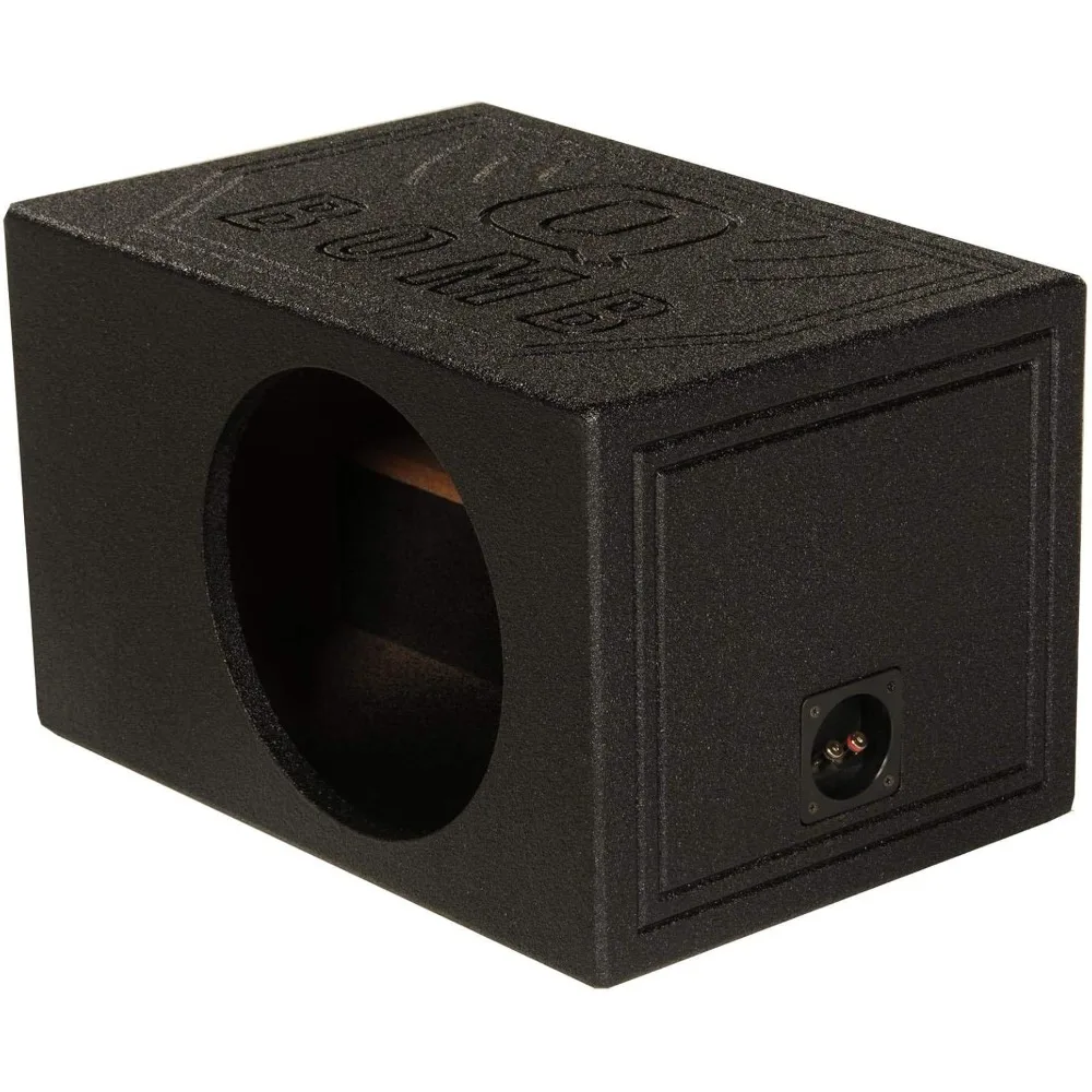 QPower QBOMB, Single 10" Tough Vented Shallow Ported Car Audio Subwoofer Box Enclosure with 1.4 Cubic Feet of Air Space, Black