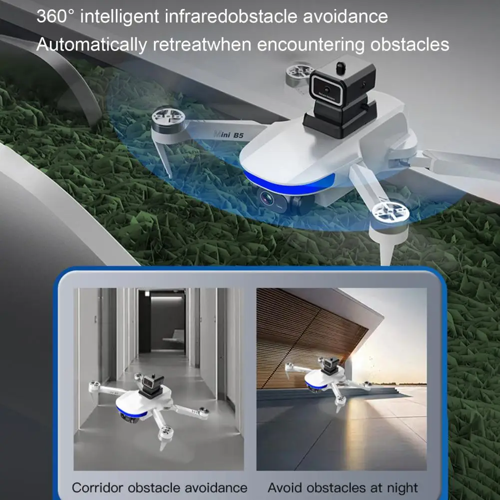 Intelligent Flight Stability: Benefit from optical flow positioning and altitude-holding mode functions that provide a stable flight experience. The drone's brushless motor and obstacle avoidance head ensure smooth navigation, automatically stopping to prevent collisions.