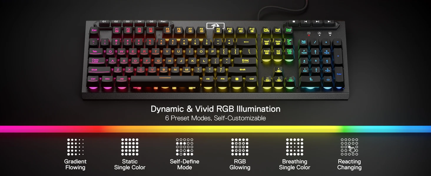Pro Software Standby - Software is available to set immersive and vivid backlight effects according to your taste and configure multiple macro functions. Check redragonshop for software downloads and explore for more.