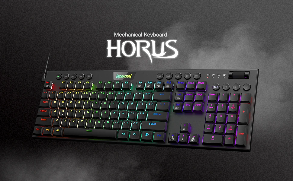 Redragon K619 Horus RGB Mechanical Keyboard Wired Gaming Low Profile Keycaps Red Switch Pro Software Supported