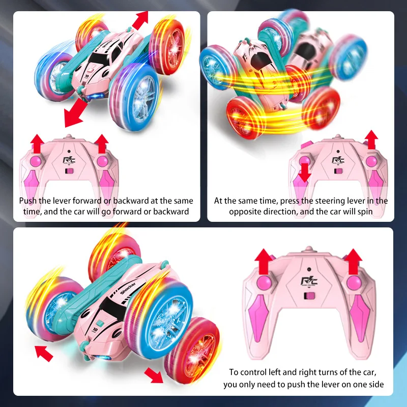 Remote Control Car - Girl Pink Remote Control Car -2.4G Double sided 360 ° Rotation - Car Toy with Lights - Girl Birthday Gift
