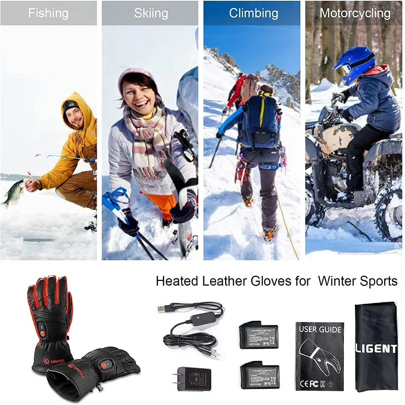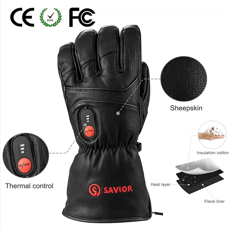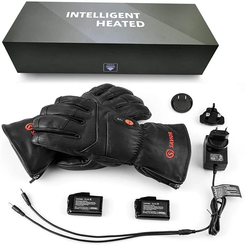 Savior Full Leather Electric Heated Gloves with Battery Powered for Sports Skiing Motorcycling Riding Fishing Hunting SHGS06