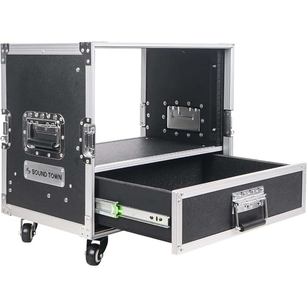 Sound Town 6U Rack Case with 2U Rack Drawer, Casters, for 19" Amps, Mixers, Microphone Receivers (STRC-6U2DR)