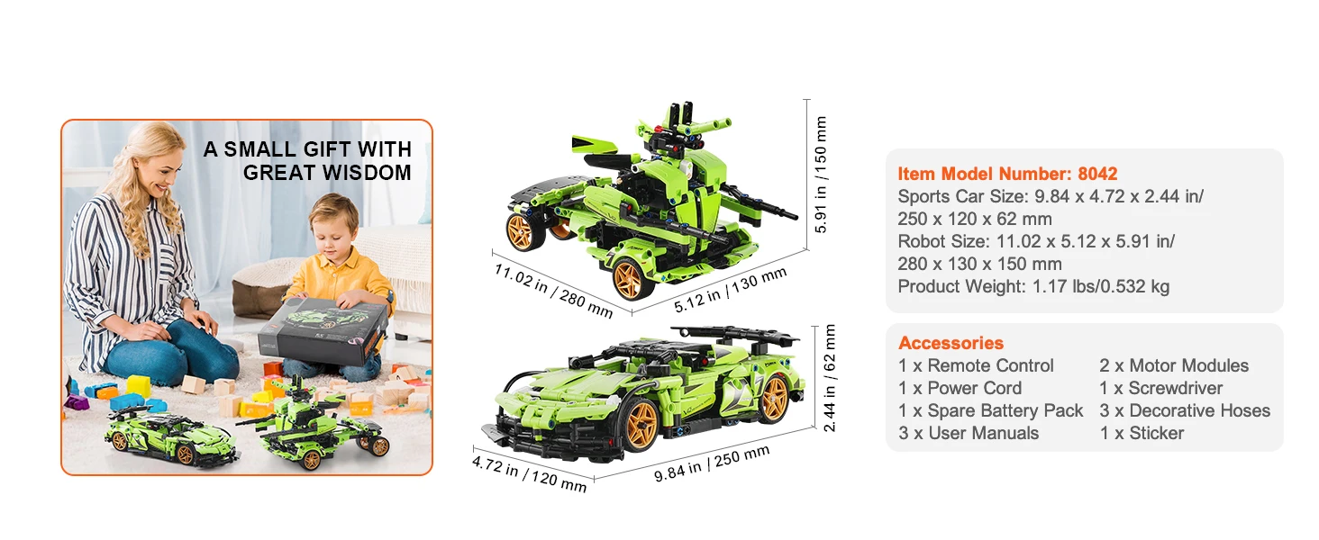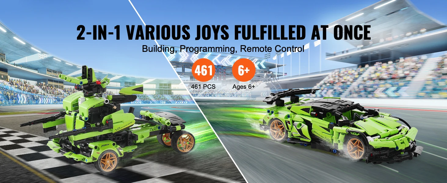 Easy to Build, Tons of Fun: With this 2-in-1 building kit, kids can create a sports car or a battle robot. Whether they're assembling, controlling with the remote, or diving into programming, there's something for every level of play. The 461 PCS set is packed with detail, making it easy and exciting to build. Plus, kids can let their imaginations run wild and come up with their own designs, keeping the fun going for hours.