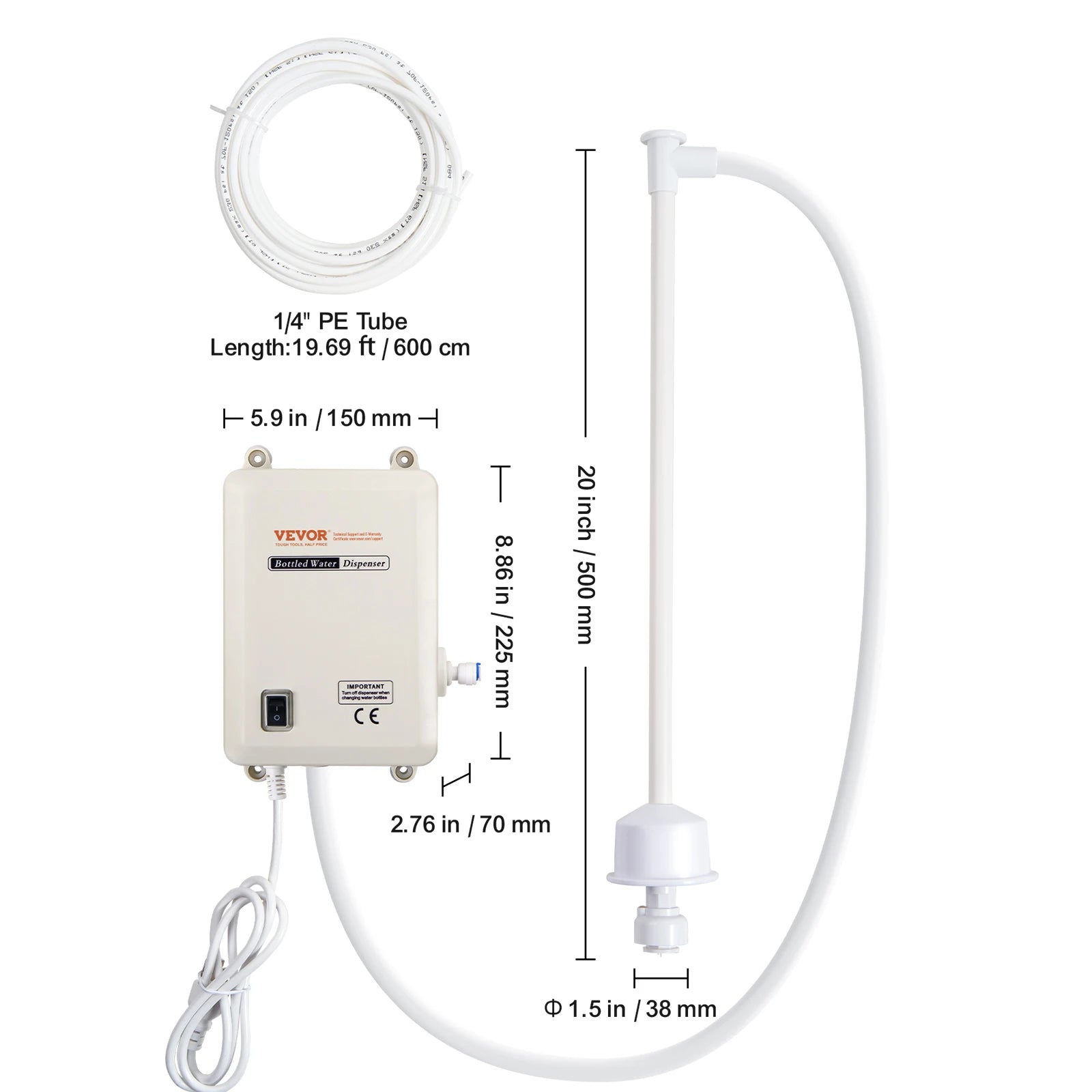 Strong Compatibility: This bottled water dispenser pump system is a single-tube bottled water pump system, specifically designed for 5-gallon bottled water. Powered by a power cord, it delivers drinking water under pressure. With 1 inlet pipe, it's practical and can easily meet the drinking water needs of households.